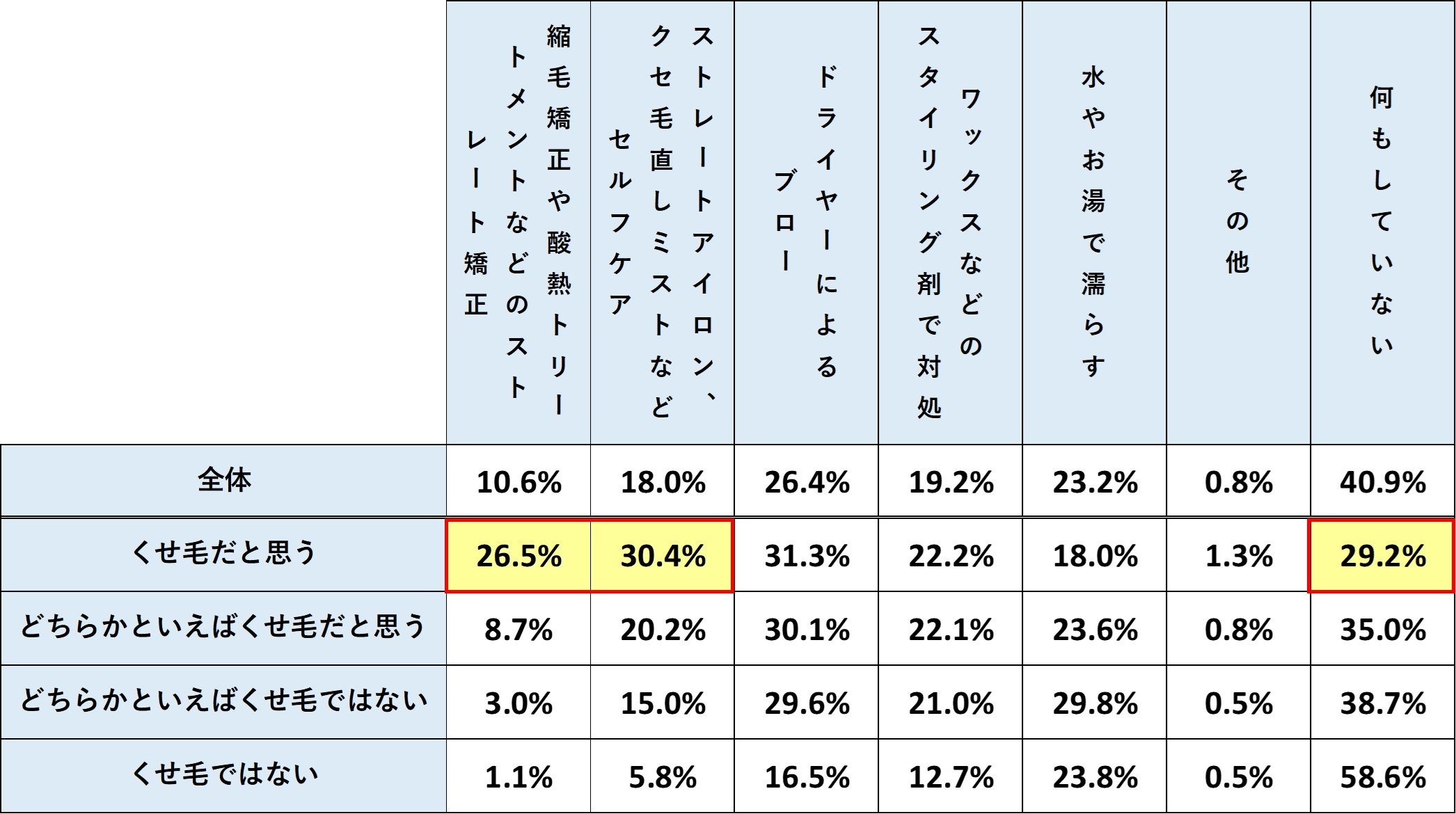 ○調査名:髪の毛のくせに関する意識調査
