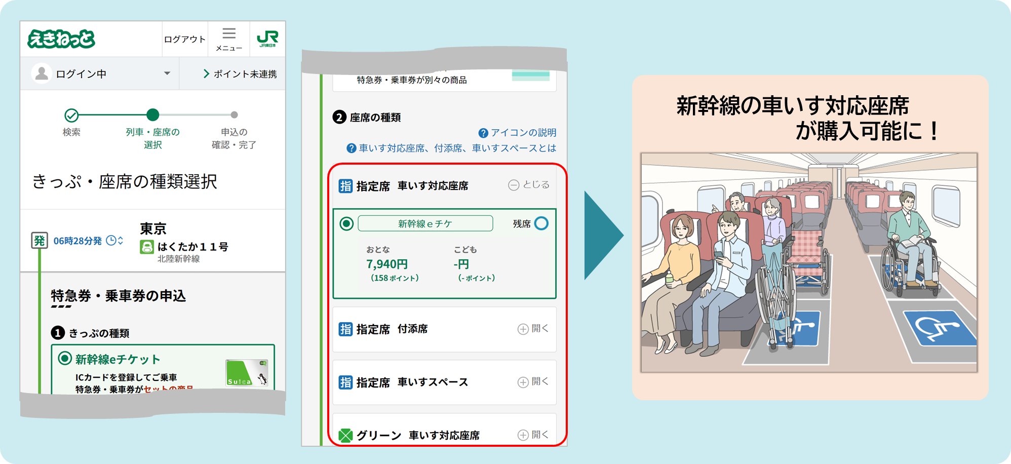 えきねっとで新幹線の車いす対応座席の取り扱いを開始します