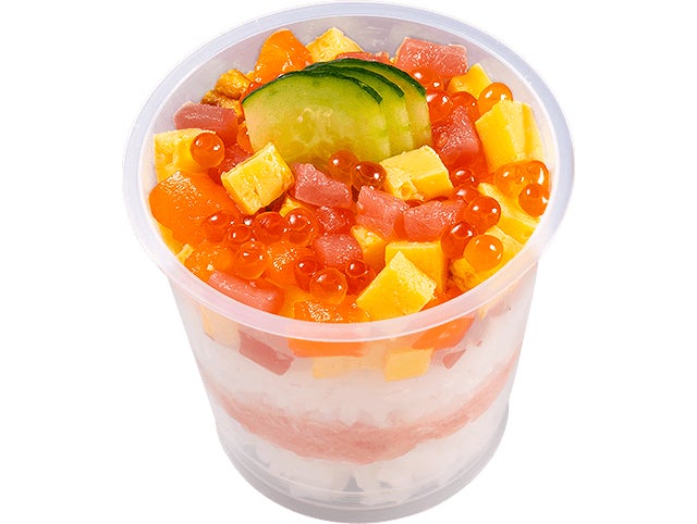 色鮮やかなちらし寿司には、おこさまから大人気の「サラダ」や「えび」「サーモン」など、見た目も華やかな人気ネタをトッピング。