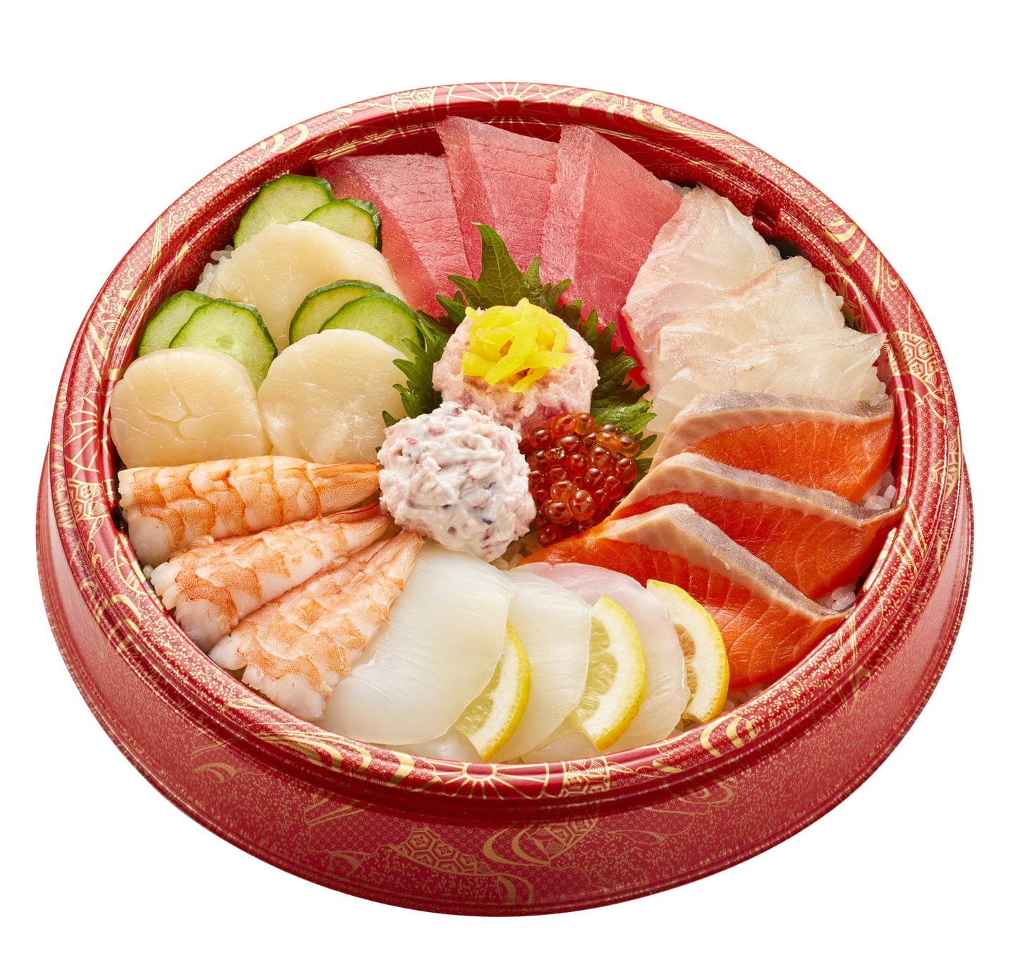 13種類の具材を使用した豪華な一品です。サラダやまぐろ、サーモン、えび、いくらなど、おこさまからも大人気のネタを贅沢に散りばめました。