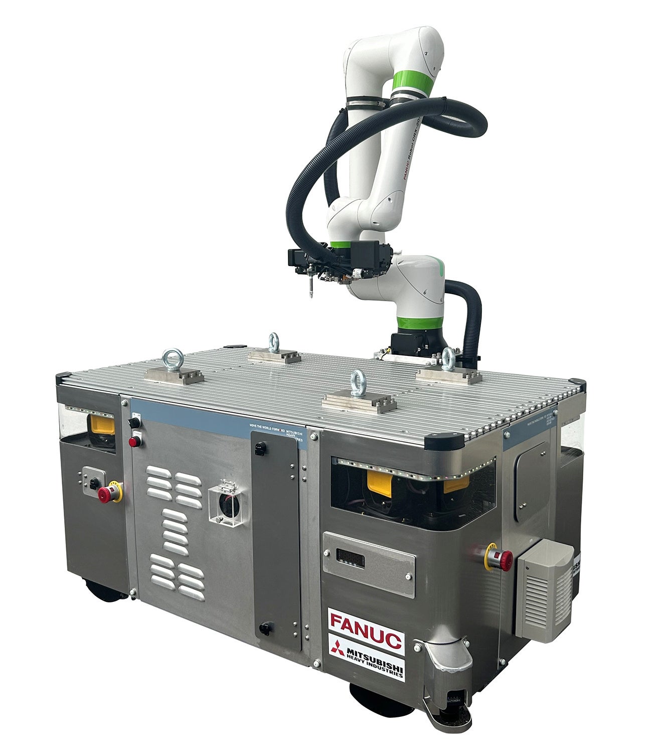 三菱重工グループの製造現場において、スループット向上、リードタイム短縮、省人化を推進する自律移動式ロボットシステム(FCR-PF: Flexible Collaborative Robot-Plat Form)を開発・実用化した。既存の生産エリアで作業者と一緒に作業ができる協働ロボットシステムは、ソフトウエア駆動型で、アプリケーションをインストールし先端のハンドを交換すれば対応できるタスクを容易に増やすことが可能である。また、一つの作業だけでなく様々な作業ができる“多能工”という特徴も有している。更に、複数台のロボット連携によって難しいタスクを遂行することもでき、個別に導入したロボットを状況に応じて組合せて運用することも可能となっている。過酷な現場環境においても運用可能なスペックとして開発を完了し、既にグループ内の製造現場で運用を開始しており、危険作業や単純繰返し作業からの作業者解放、高付加価値作業へのシフト、熟練技能のロボット化/機械化に寄与している。今後も、設備稼働率や投資効果を向上できる自律移動式多能工協働ロボットシステムによって、スループット向上、リードタイム短縮のための自動化拡大が期待できる。