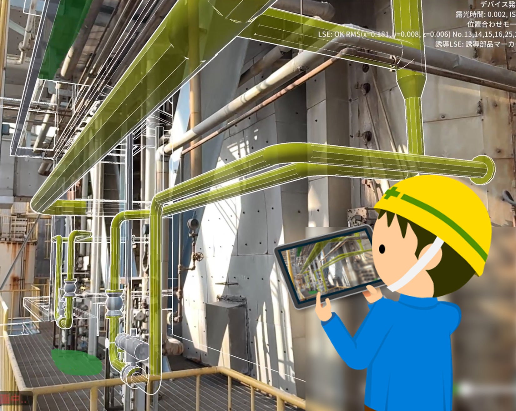 プラント改造工事において、空間設計のリードタイム短縮と最大約30%のコスト削減が可能なソリューションを開発した。図面がないような古いプラントの空間設計は、従来、レーザー計測で3D図面を作成しており、専門計測員の派遣を必要とし、データ処理に時間がかかるといった課題があった。そこで、廉価な市販のカメラで撮影した動画から3Dデータを作成する手法や、AR(実世界に画像や音声などのデジタル情報を重ね合わせて表示し、現実を拡張する技術)を使い3D-CADを現場で表示する手法を開発。これにより、空間設計のリードタイム短縮とコスト削減、さらに品質改善も実現した。火力プラントのほか、原子力、製鉄機械、艦艇などの空間設計にも採用が進んでいる。