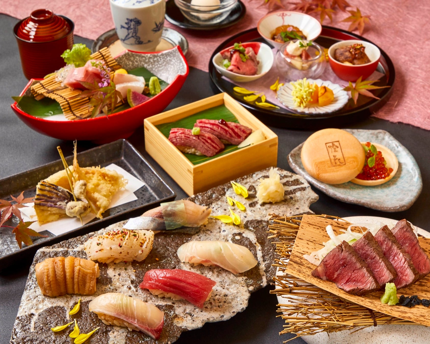 新店舗では、四季の移ろいを大切にした日本料理と、職人技が光る江戸前鮨を、川沿いの穏やかな景色を望む、モダンで洗練された空間でお楽しみいただけます。