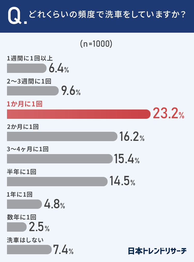23.2%の方が、「1か月に1回」洗車をしていると答えました。