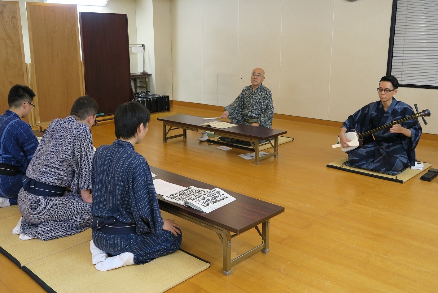 研修課程では、義太夫と三味線の演奏法を学ぶほか、竹本の演出にかかわる約束事などを習得します。
