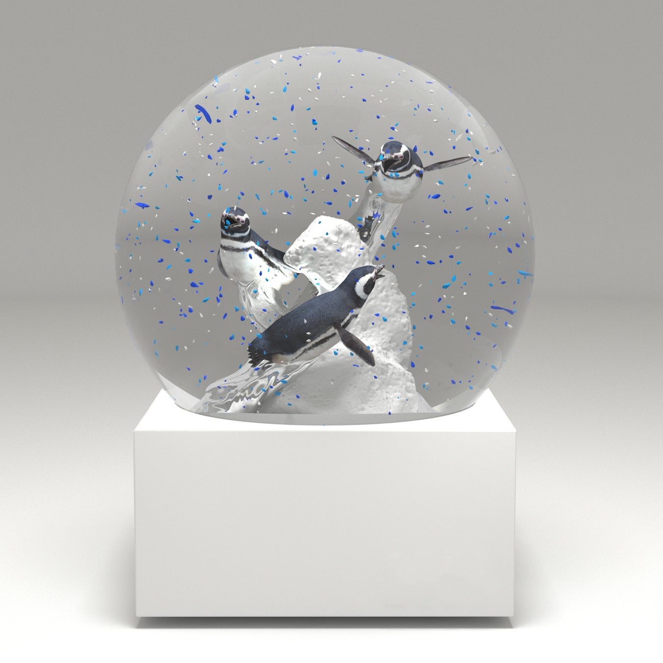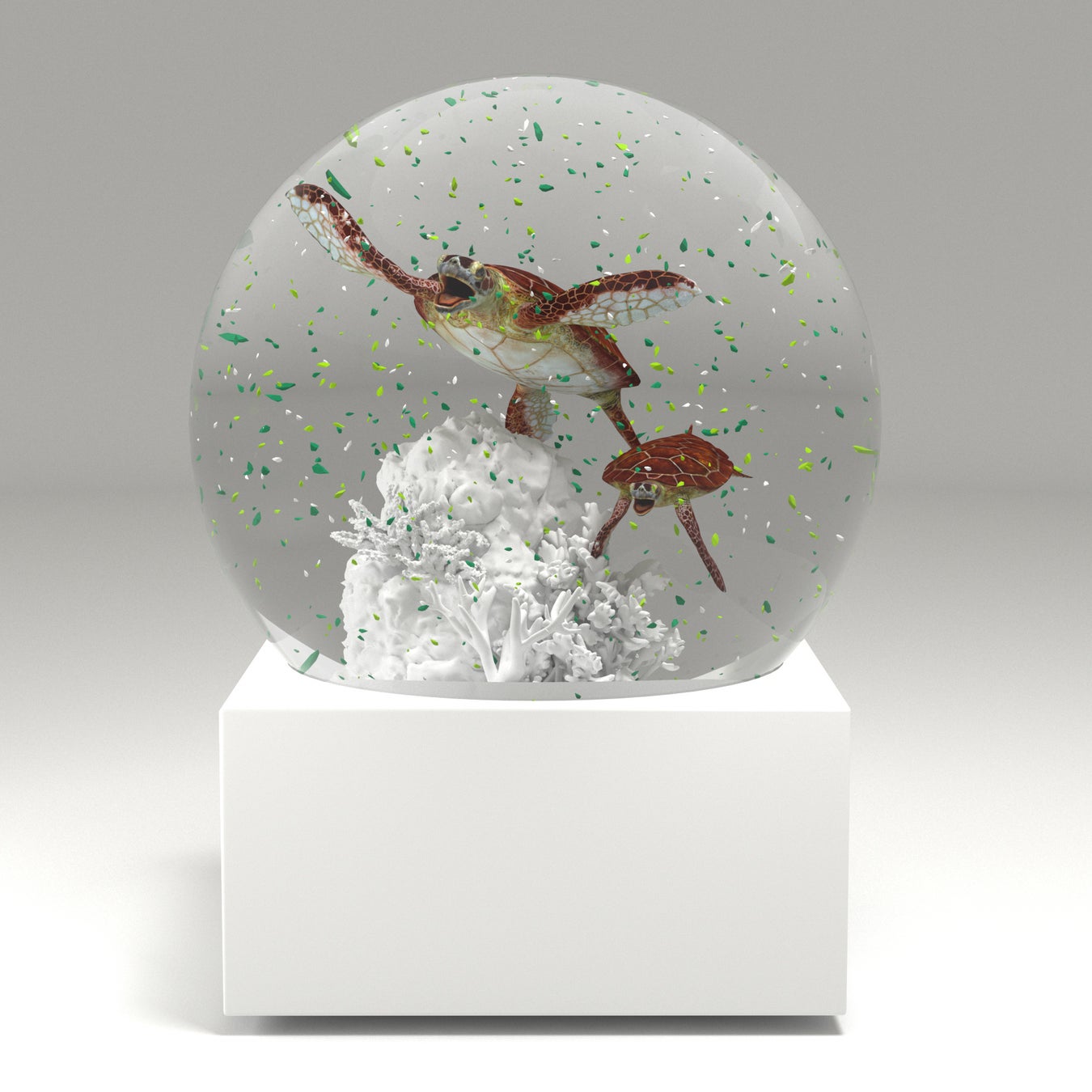 ドームの中を舞うフレークは、実際に海から回収したプラスチックを使用しており、既に海洋プラスチックゴミの影響が報告されている3つの生物(カクレクマノミ、アオウミガメ、マゼランペンギン)の意匠と共に鑑賞できます。各種ドームの造形・制作は、スノードーム作家・石田兵衛(いしだ ひょうえ)氏が担当しています。