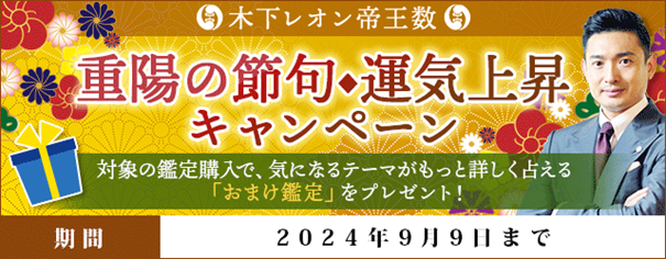 開運占い|おまけ鑑定でさらに運気アップ!重陽の節句◆運気上昇キャンペーンを木下レオン◆帝王数にて開催中