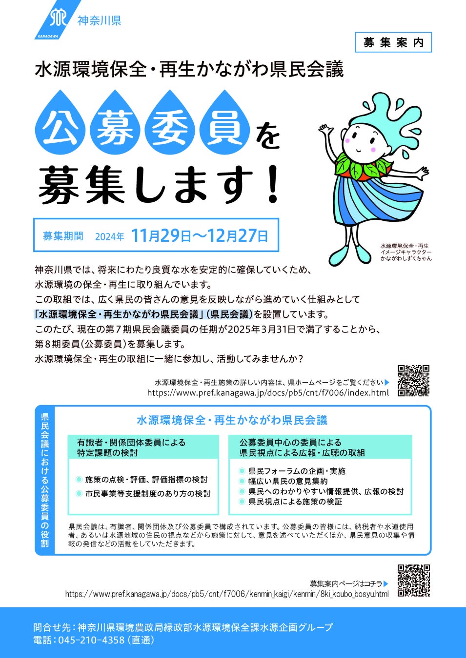 水源環境保全・再生かながわ県民会議公募委員募集案内