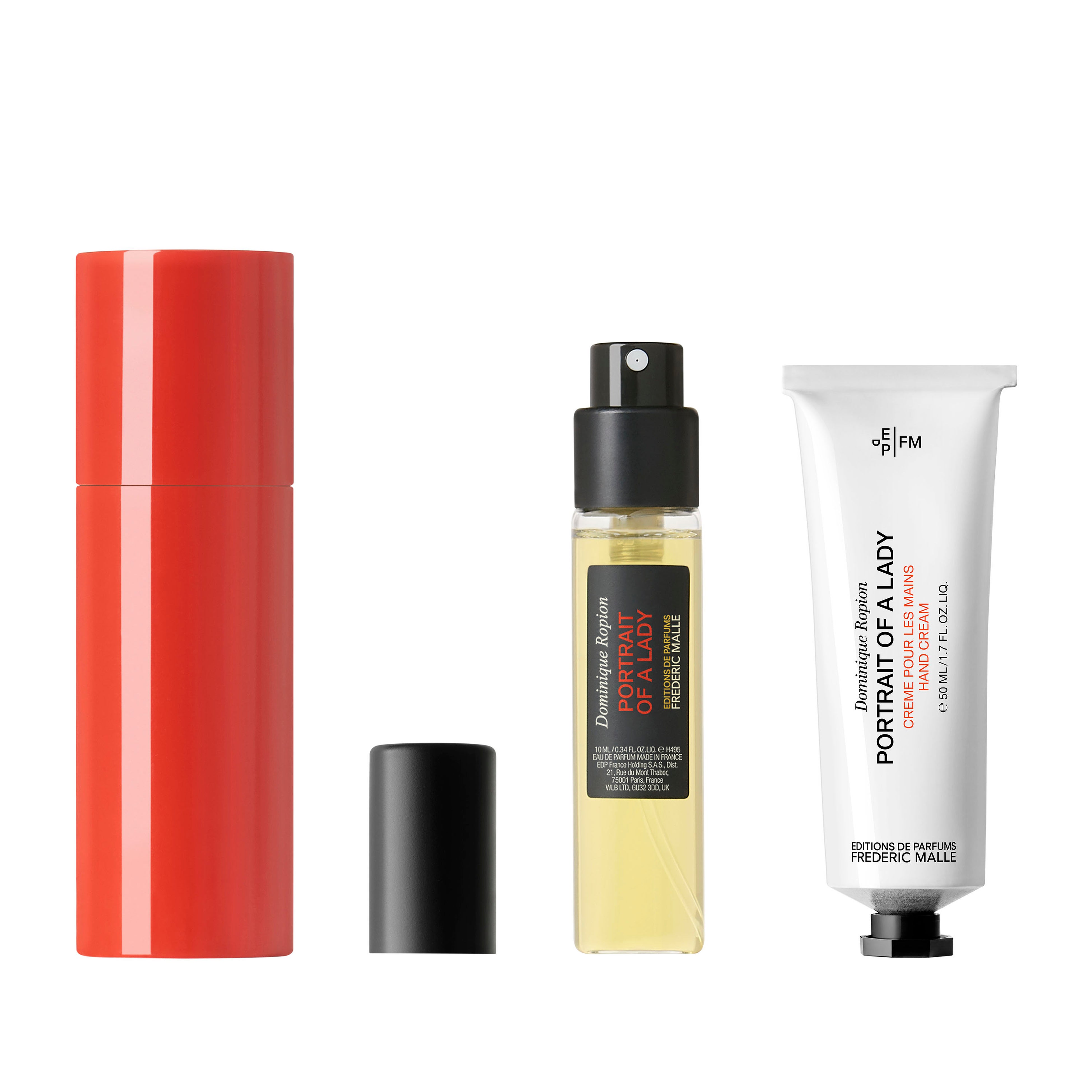 ターキッシュローズを贅沢に配合し、「貴婦人の肖像」と呼ぶにふさわしい究極のエレガンスを描いたベストセラーフレグランス「ポートレイト オブ ア レディー」。ブランドの象徴的なカラー、レッドのトラベルケースがついた、持ち歩きに便利なフレグランスに、ハンドクリームをプラスした限定セットを特別なデザインボックスに。