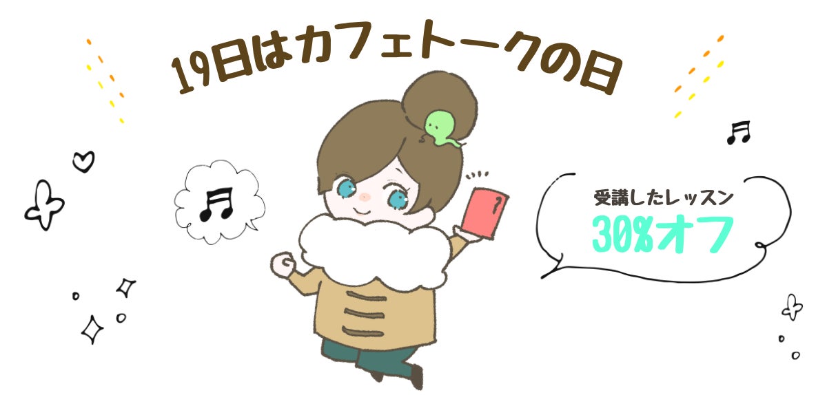 「カフェトークの日」とは、日本最大級オンライン習い事サイト「カフェトーク」が毎月19日に実施している30%ポイントバックキャンペーンです。