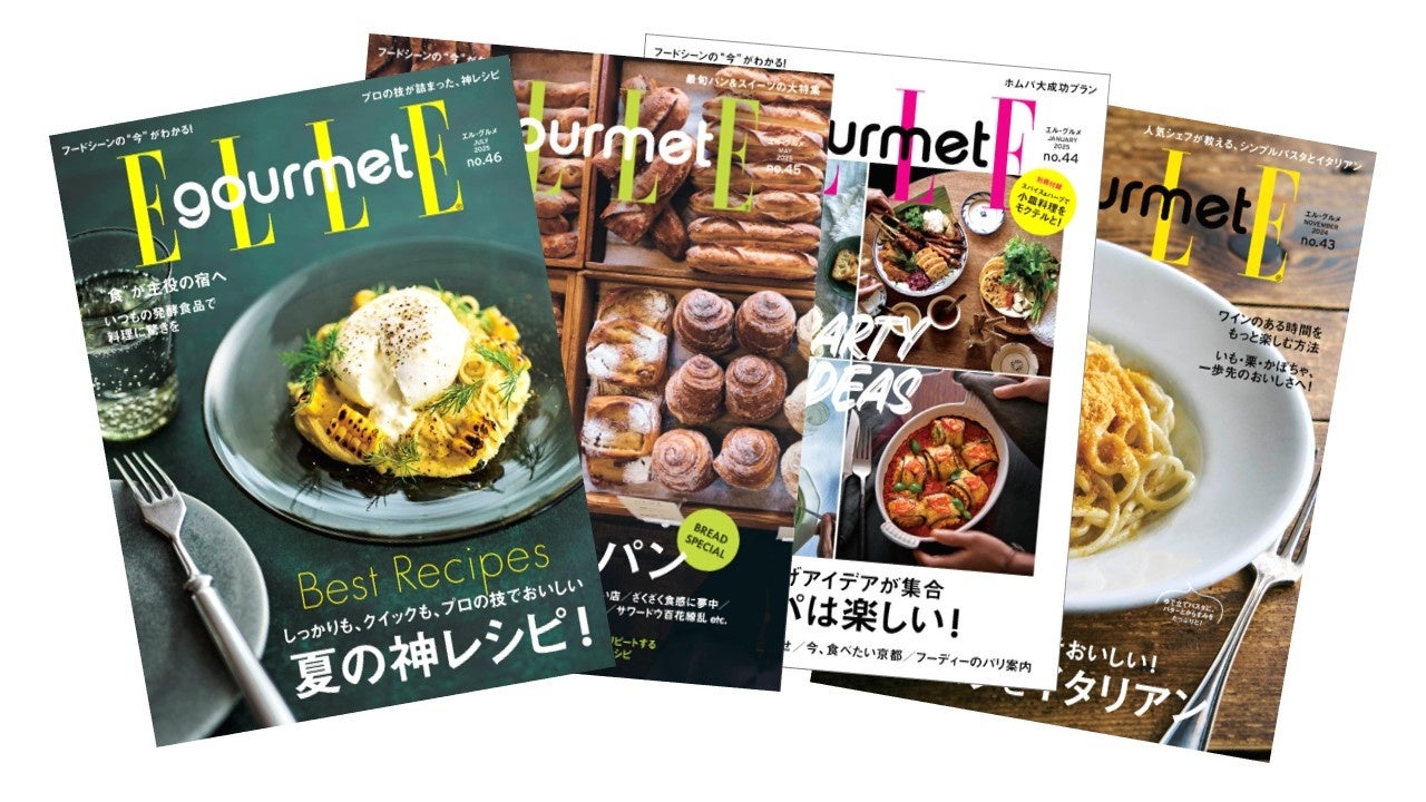 『エル・グルメ』は、ひと皿の料理が織りなすストーリー、キッチンから広がるコミュニケーション、テーブルから始まるスタイルのある暮らし……大切な人たちとすごす幸せな時間を演出するコンテンツを毎号お届けしています。日常のメニューからパーティ料理までの幅広いレシピに加え、食材やキッチンツール、国内外のショップやレストランの情報まで、あらゆる角度から食を楽しむための情報が満載です。