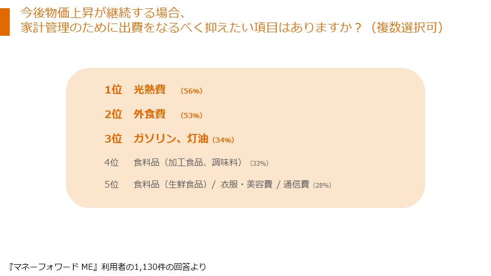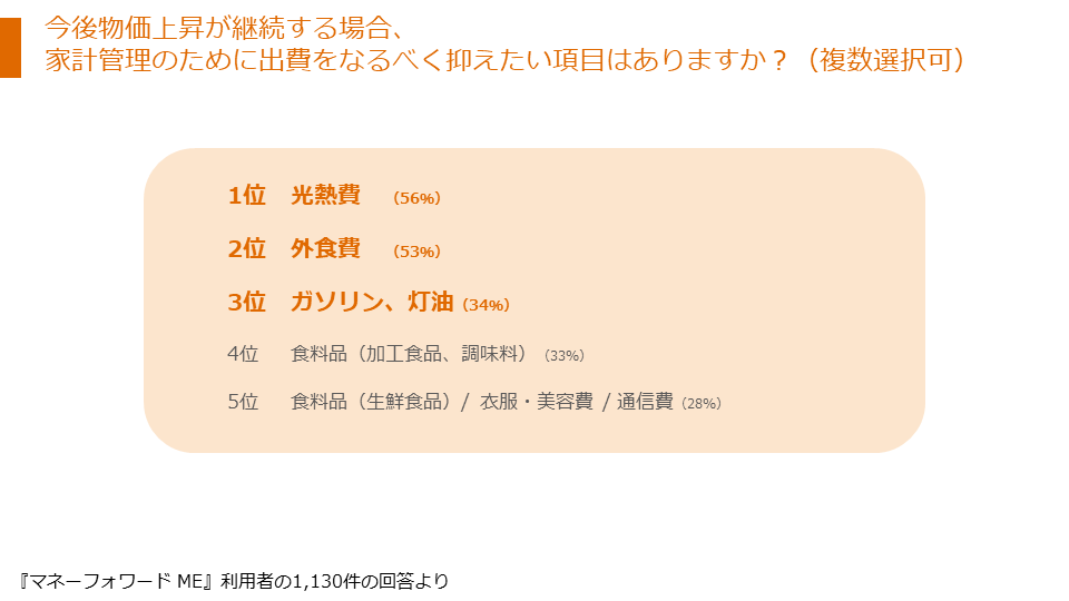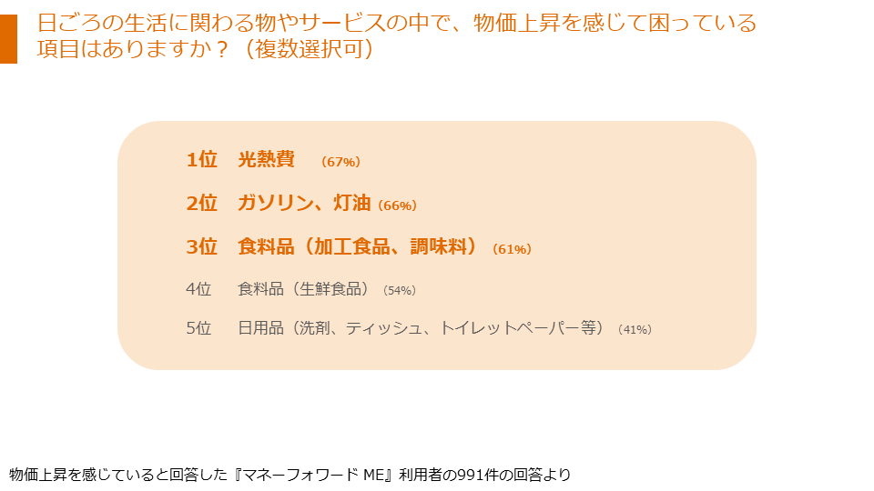 株式会社マネーフォワード(以下「当社」)は、お金の見える化サービス『マネーフォワード ME』の利用者を対象に、物価上昇にまつわるアンケート調査を行いました。