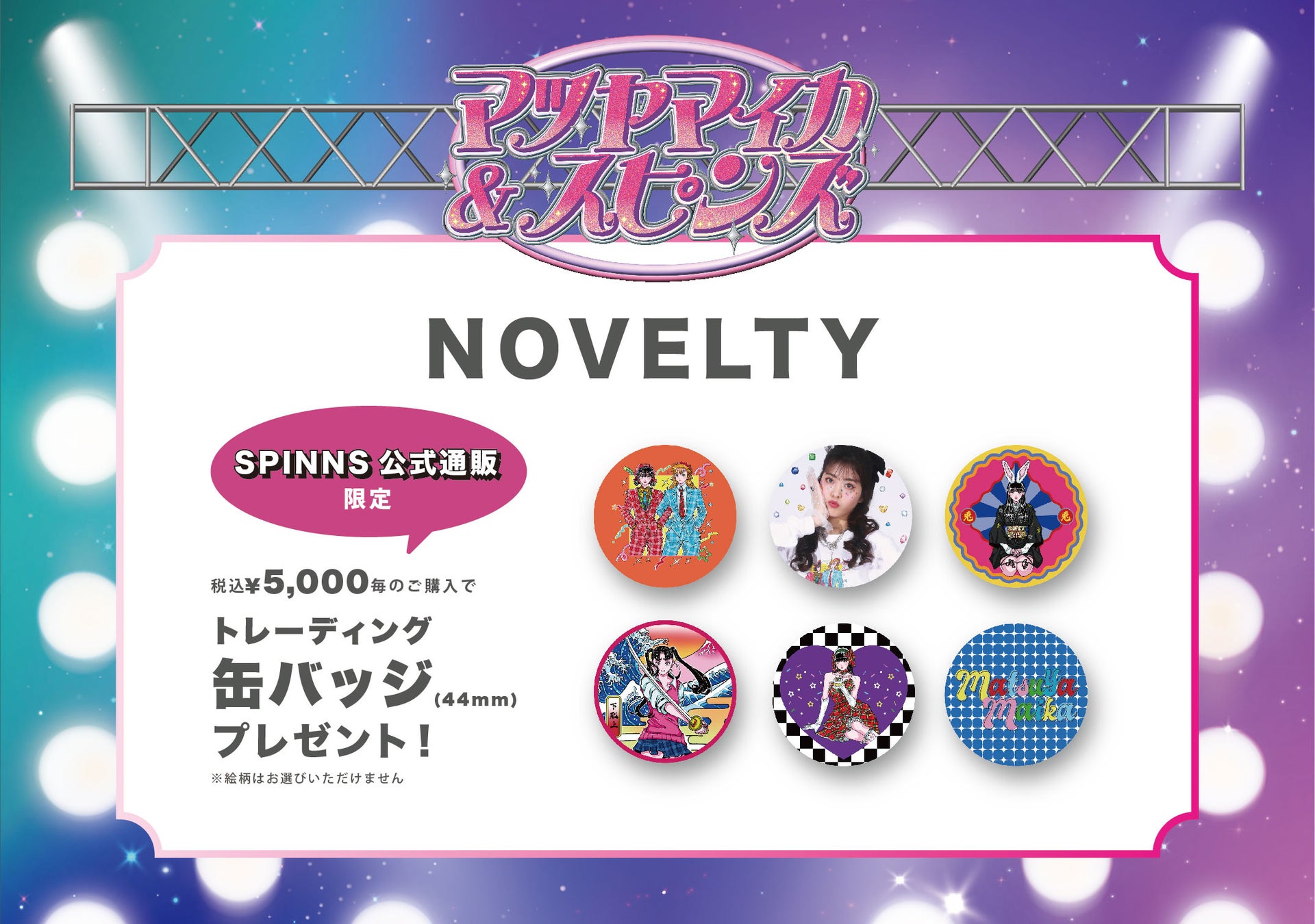 ・SPINNS公式通販/税込5000円毎にトレーディング缶バッジ(44mm)を1個を配布いたします。