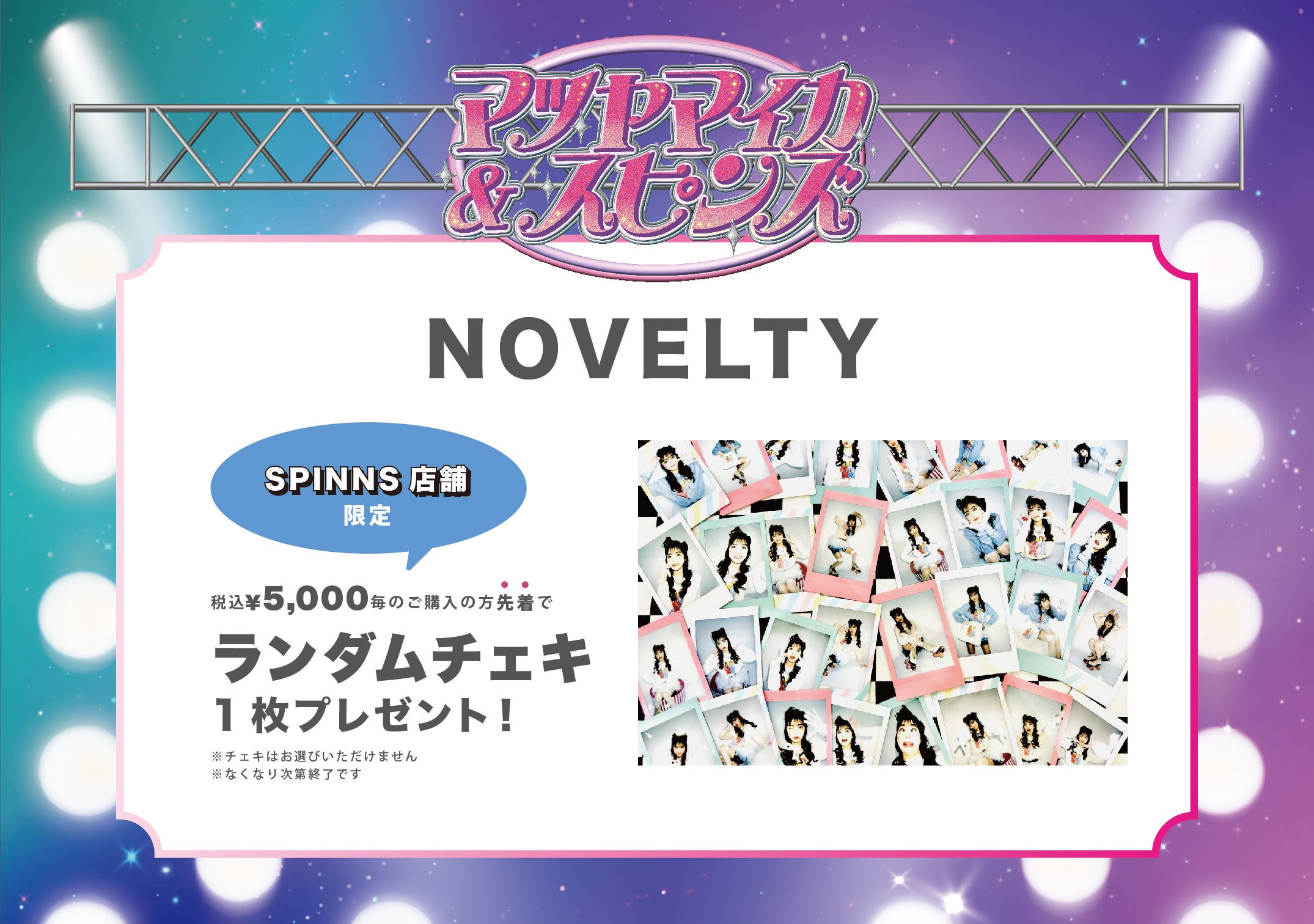 ・SPINNS SHIBUYA109店、SPINNS池袋サンシャインシティアルタ店、SUPER SPINNS梅田HEP FIVE店、SUPER SPINNS福岡PARCO店/税込5000円毎に先着でランダムチェキを1枚を配布いたします。