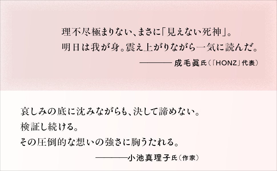 発売前から大重版決定! 「原発不明がん」を発症した夫の闘病の記録、そして医療関係者への取材内容を綴った『見えない死神 原発不明がん、百六十日の記録』(東えりか・著)が10月24日に集英社より発売。