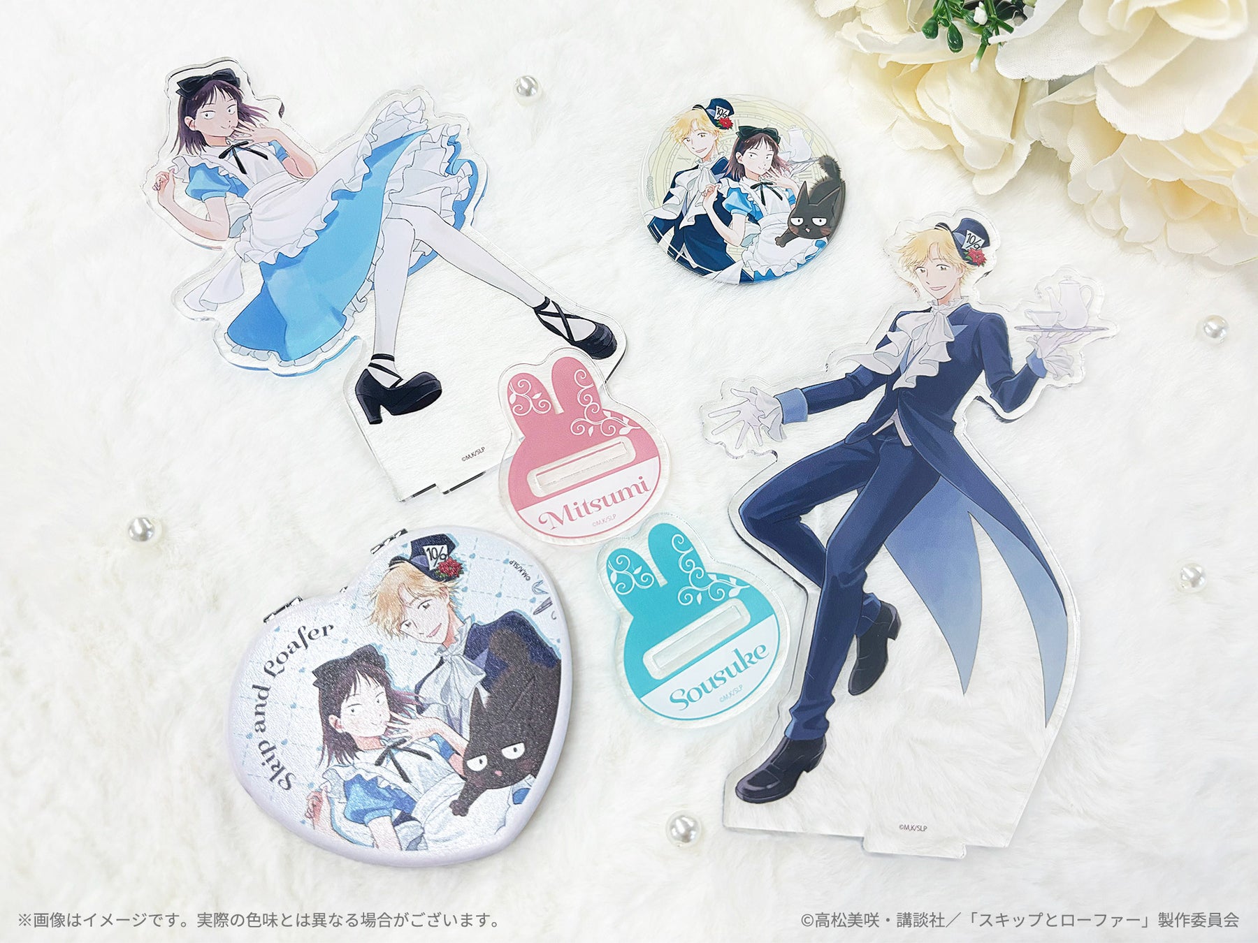 今回グッズに使用されているイラストは、キャラクターデザイン・梅下麻奈未さんによる描き下ろし!“不思議の国のアリス”をテーマにした岩倉美津未(みつみ)と志摩聡介の可愛い&カッコイイ姿はファン必見です!!