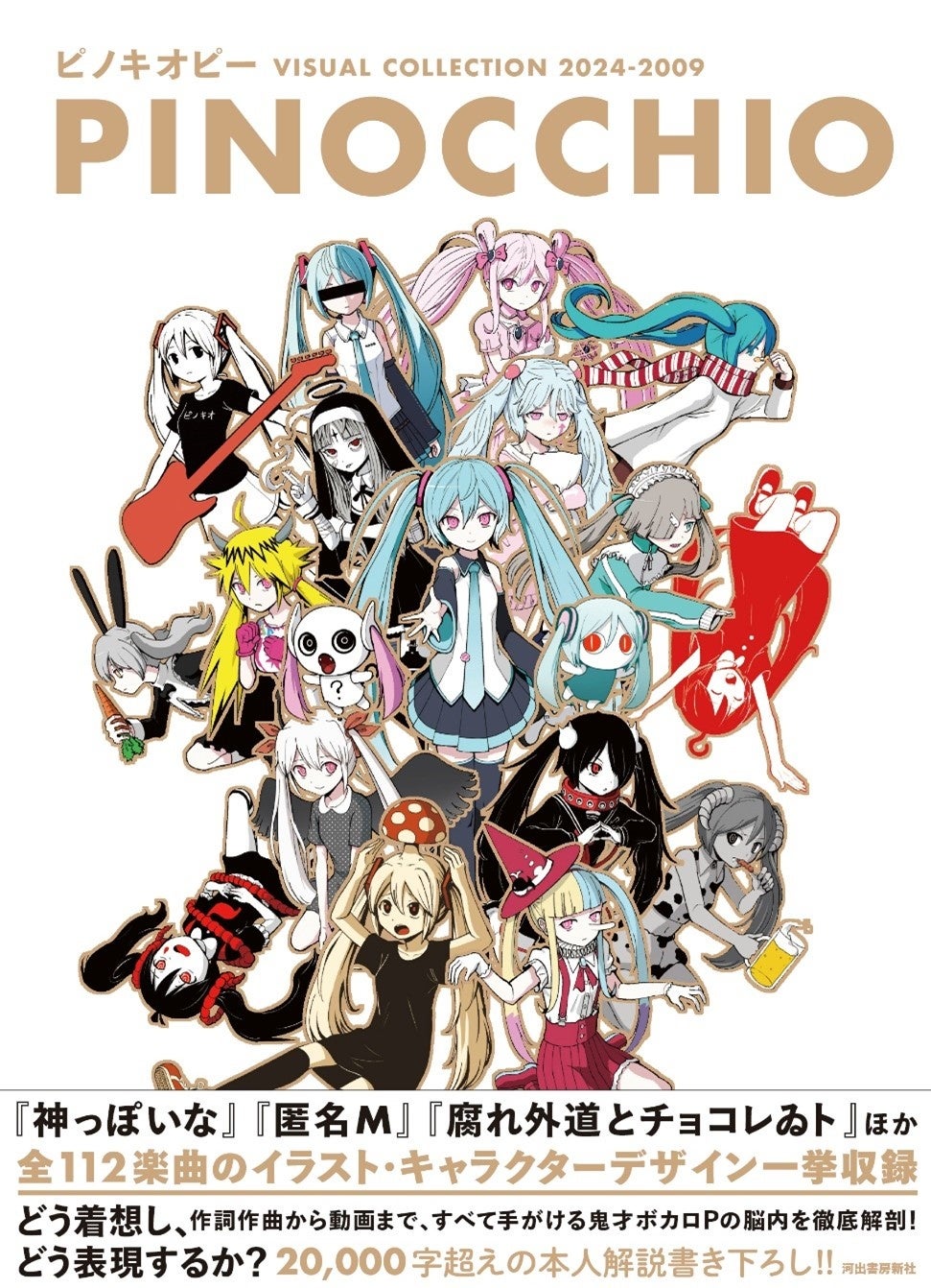 2024年の新曲から2009年のデビュー曲まで、全112楽曲のビジュアルワークス(他クリエイター制作作品も含む)を20000字超えの本⼈解説⼊りで収録したフルカラー画集。ピノキオピーの脳内世界を堪能せよ!