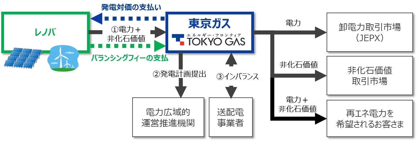 東京ガス株式会社(社長:内田 高史、以下「東京ガス」)はこのたび、株式会社レノバ(社長:木南 陽介、以下「レノバ」)と、再エネ需給調整サービス*1を活用した、東京ガスで初となるFIP*2制度の認定を受けた太陽光発電所由来の電力を含む電力購入契約(以下「本契約」)を締結しました。