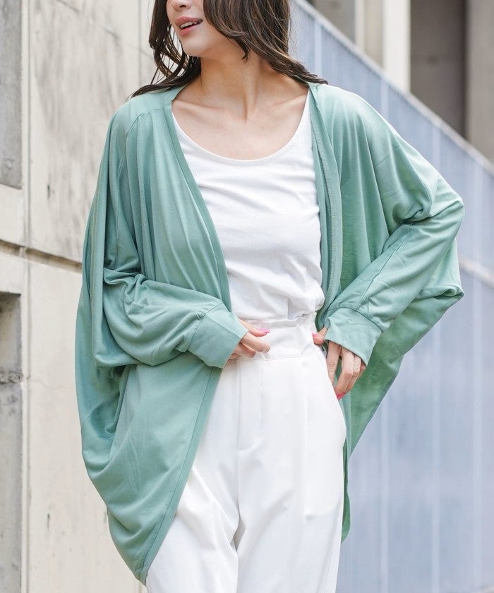 ルーズなドルマンスリーブは羽織るだけでこなれた印象に。UVカット仕様&薄手素材でこれからの季節にぴったり。豊富な15色展開。