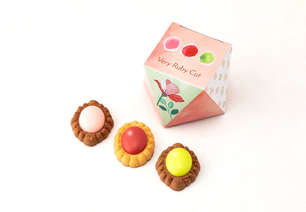 「Very Ruby Cut(ベリールビーカット)」がお菓子にこめたメッセージは 「Stay “Ruby Color” Show your True Color いつだってあなたらしく ルビーみたいに輝きつづけて!」。果実や木の実のおいしさをとじこめたルビー色の宝石スイーツ達の世界を、たっぷり楽しんでいただきます。