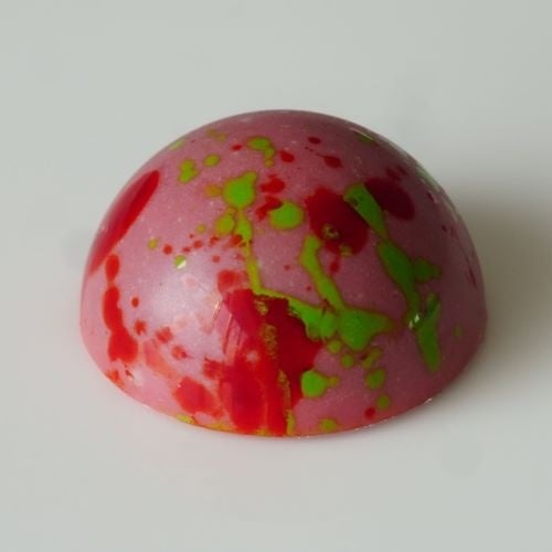 地熱発電の蒸気を活用して栽培された八幡平スマートファーム産「温泉バジル」をビターチョコと合わせてガナッシュに。みずみずしい旬の苺のコンフィチュールとバジルの爽やかな香りのガナッシュが上品なペアリング。