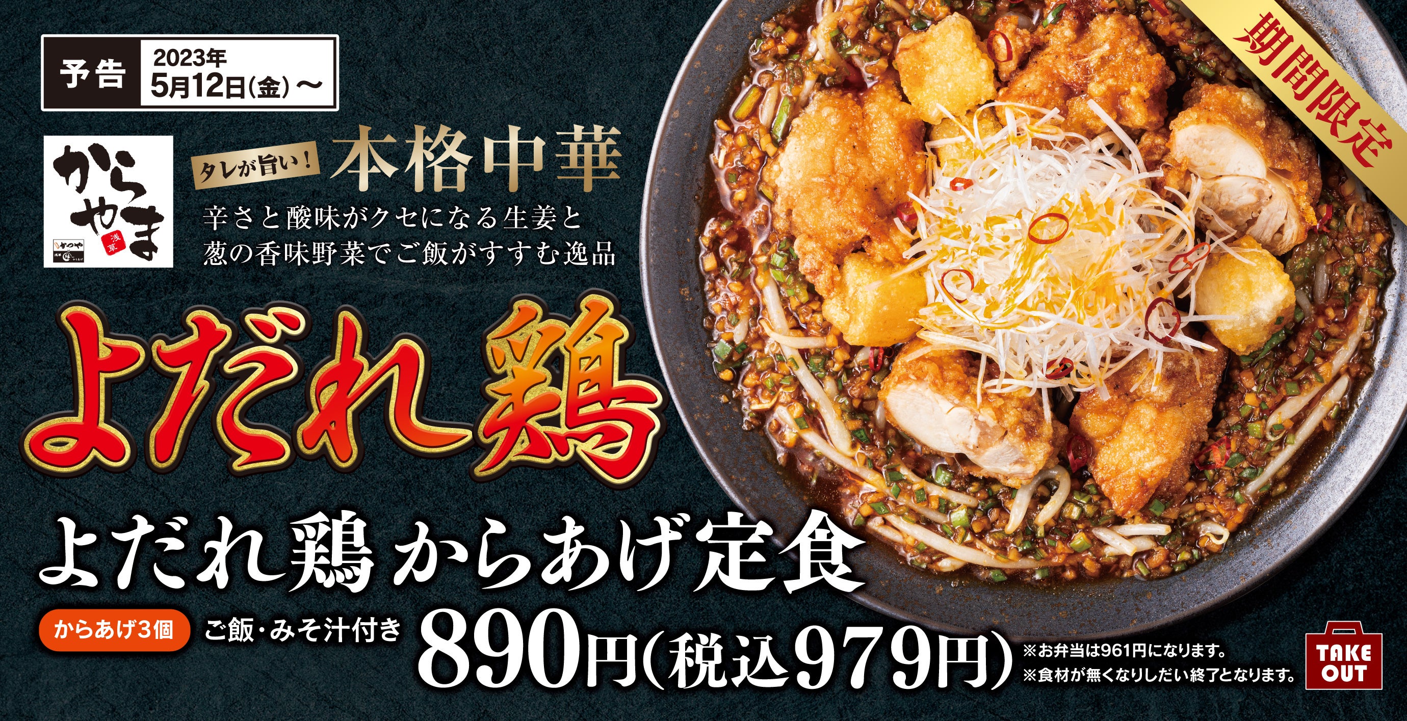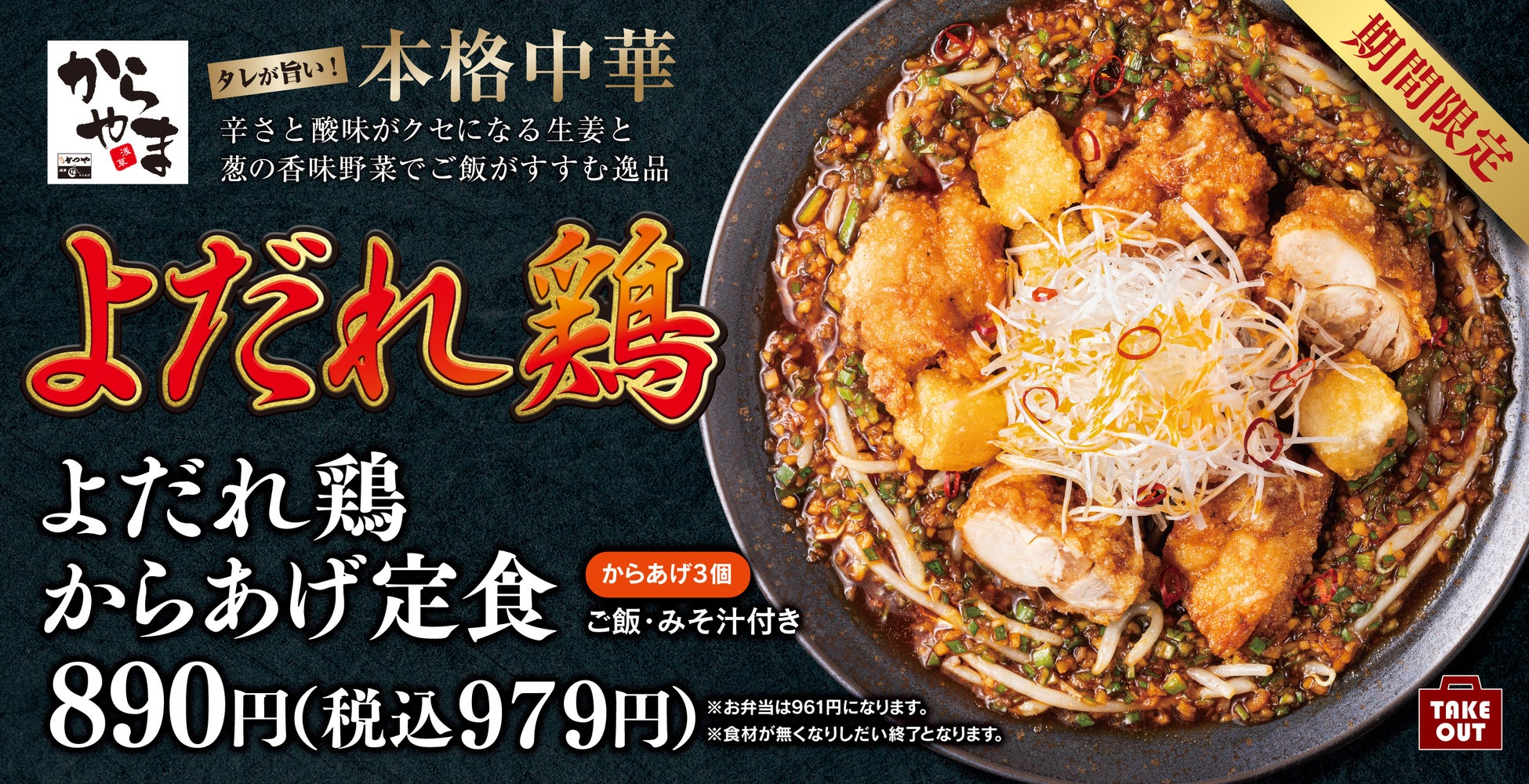 【本格中華シリーズ第2弾】辛さと酸味がクセになる「よだれ鶏からあげ定食」からやまに新登場!