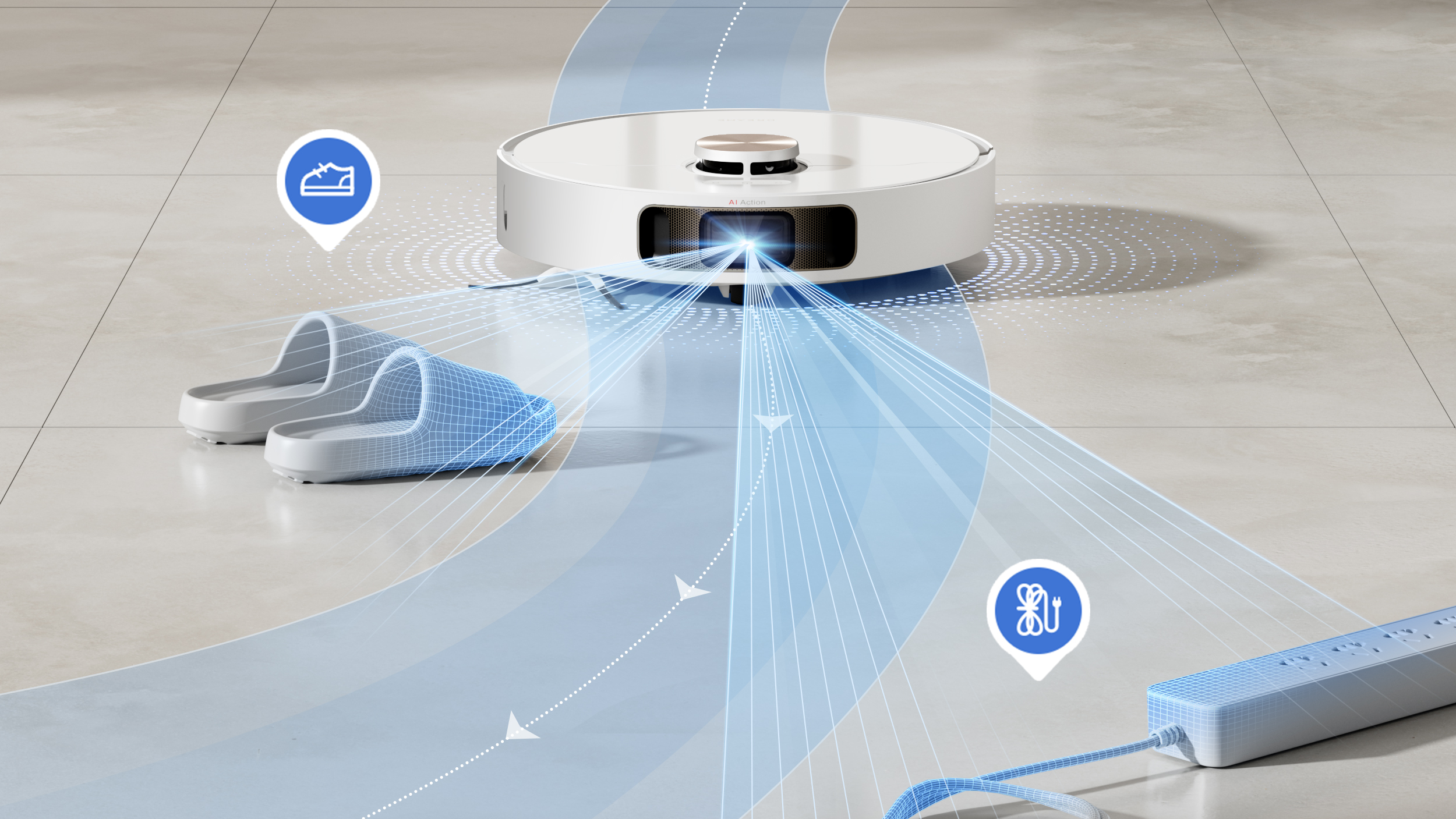 L10s Pro Ultra Heatは⾼精度なAI+3Dマッピングシステムを搭載し、部屋の環境をすばやく学習し、部屋のタイプ、床の形状、障害物に応じて清掃ルートをスマートに生成するほか、レーザーセンサーでは捉えにくい55種の物体*の認識もすばやく行うことで、障害物を賢く回避しながら清掃します。