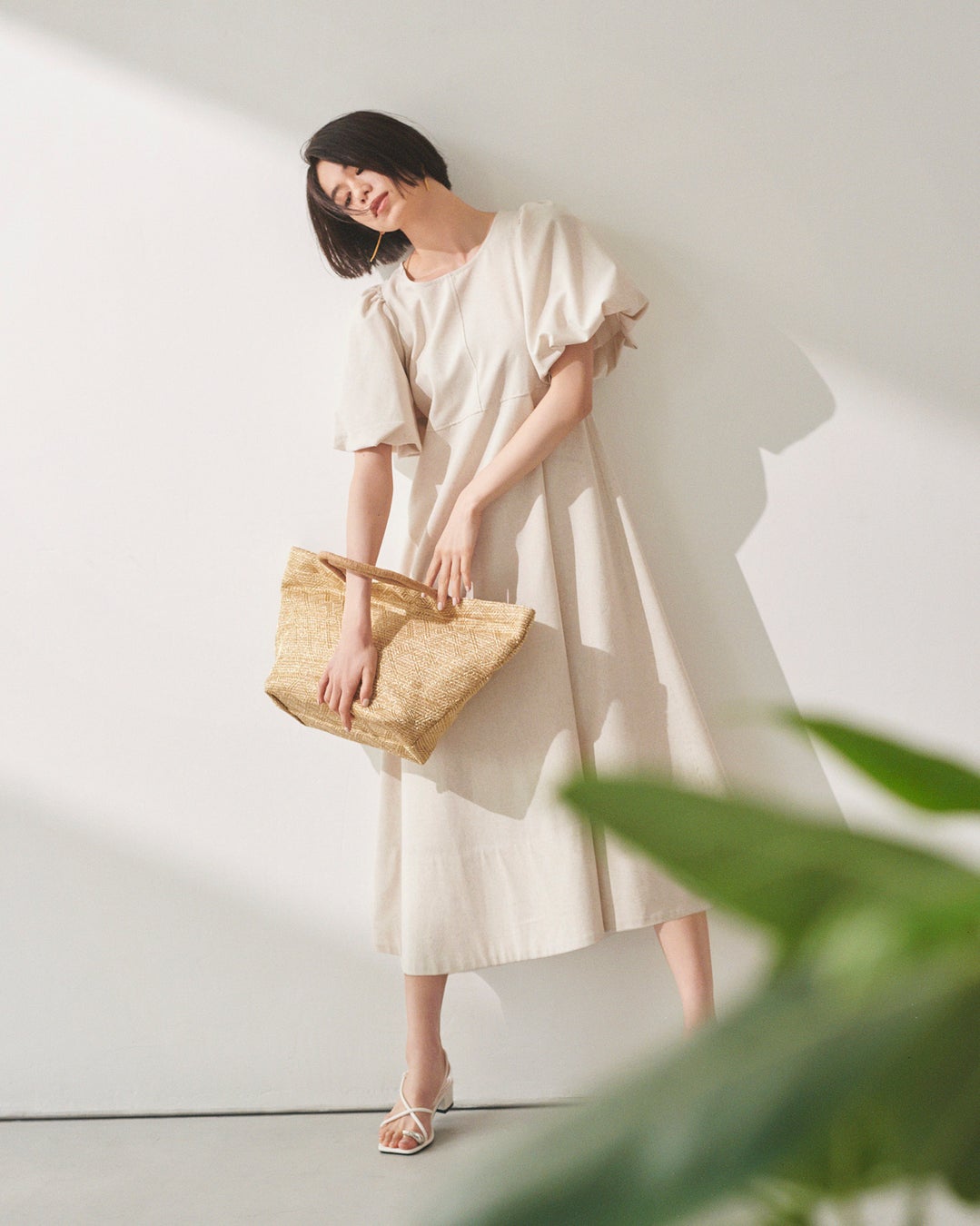 ワンピース(¥13,090)/バッグ(¥7,920)/サンダル(¥8,690)/イヤリング(¥4,950)