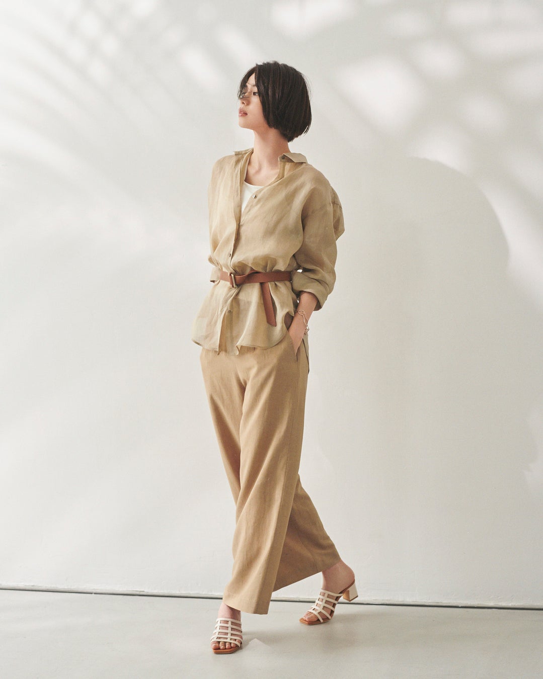 シャツ(¥8,690)/パンツ(¥8,690)/インナー(¥4,290)/ベルト(¥4,950)/サンダル(¥8,690)/ブレスレット(¥3,190)