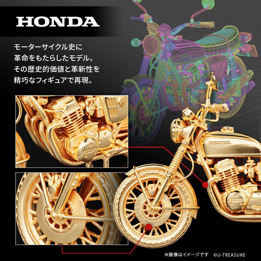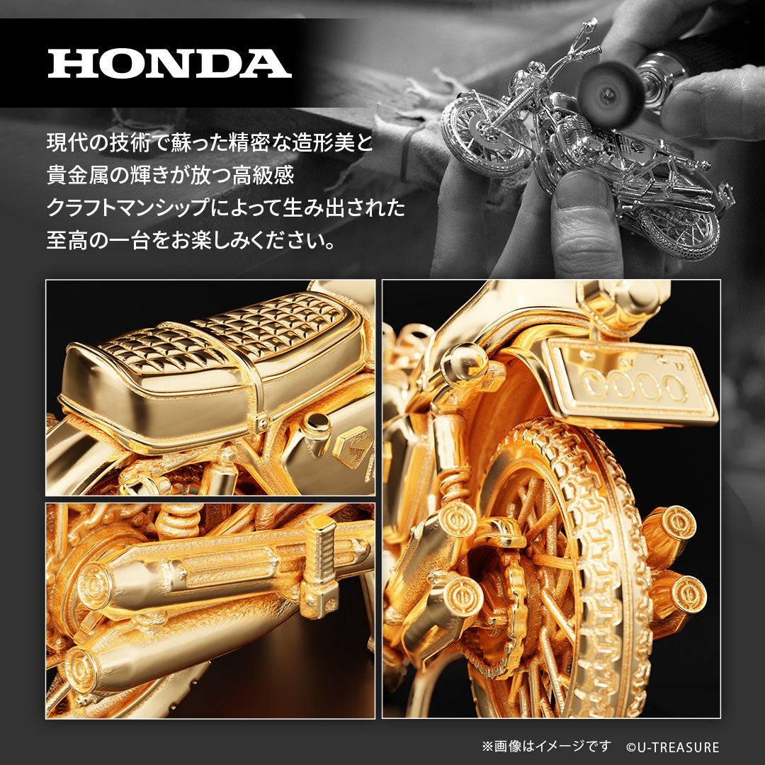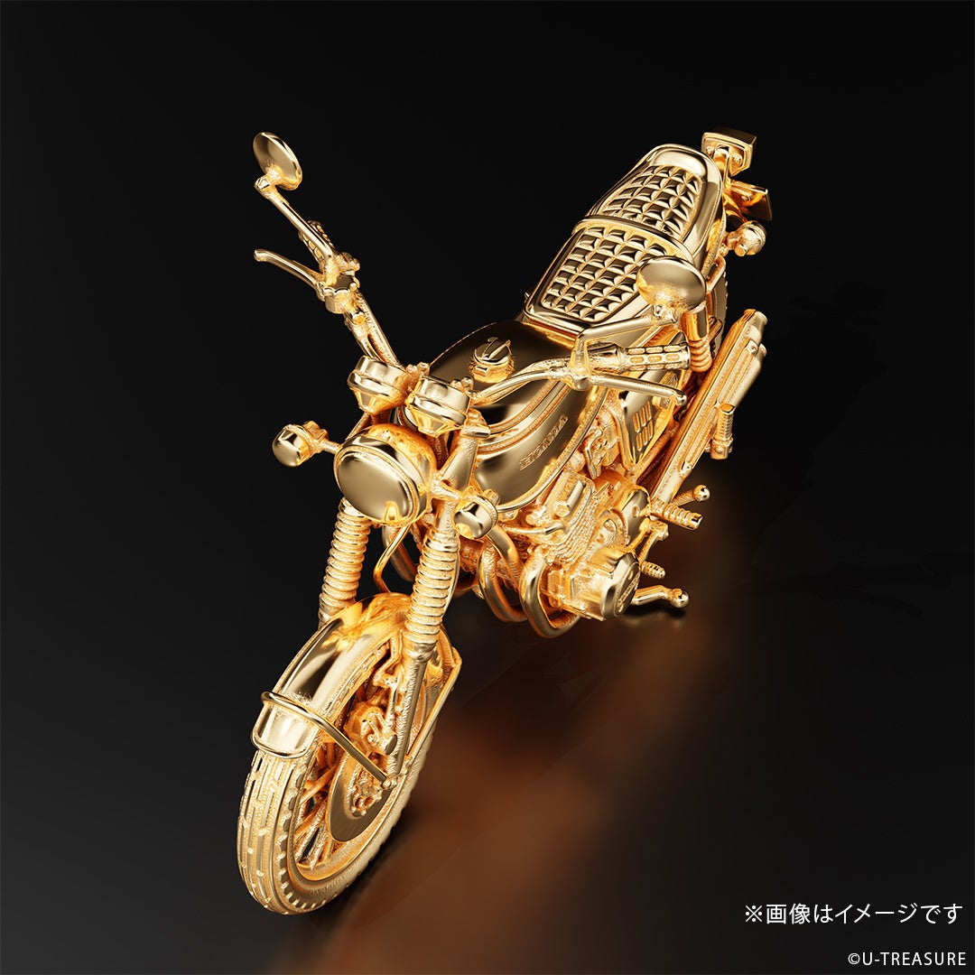 本田技研工業株式会社監修の元、伝説のバイクを、永遠のアートに。 CB750FOUR K0は、世界初の量産4気筒エンジンを搭載し、モーターサイクル史に革命をもたらしたモデル。その歴史的価値と革新性を、精巧なミニフィギュアで再現。モーターサイクル愛好家にとって「所有する喜び」を提供します。 フィギュアは高品質な貴金属(シルバー925)を使用し、職人の技術で細部まで忠実に再現。特徴的な角張っているサイドカバーを始め、ガソリンタンク、シート、フェンダー、マフラープロテクター、フロントフォークなどの主要部分からキャブレター、燃料コック、エアクリーナー、ワイヤー類など細部まで、実車を細かく調査し、熟練のジュエリー職人達がジュエリークオリティで丁寧に仕上げました。 伝説のバイクとして多くの人の心を掴んだそのデザインと革新性は、初めて触れる人には新鮮な驚きを、かつて夢中になった人には甘美な想い出を蘇らせます。 現代の技術で蘇った精密な造形と、貴金属の高級感が融合したこのフィギュアは、過去へのノスタルジーと未来への新たな所有欲を満たす特別な体験をお届けします。 デスクやリビングに飾れる“アートピース”としてデザインし、専用のディスプレイケースにはサイドカバーのエンブレムをあしらって所有者だけの特別感を演出。 車体のナンバープレートには限定生産の証しとしてシリアルナンバーを刻印しています。 |