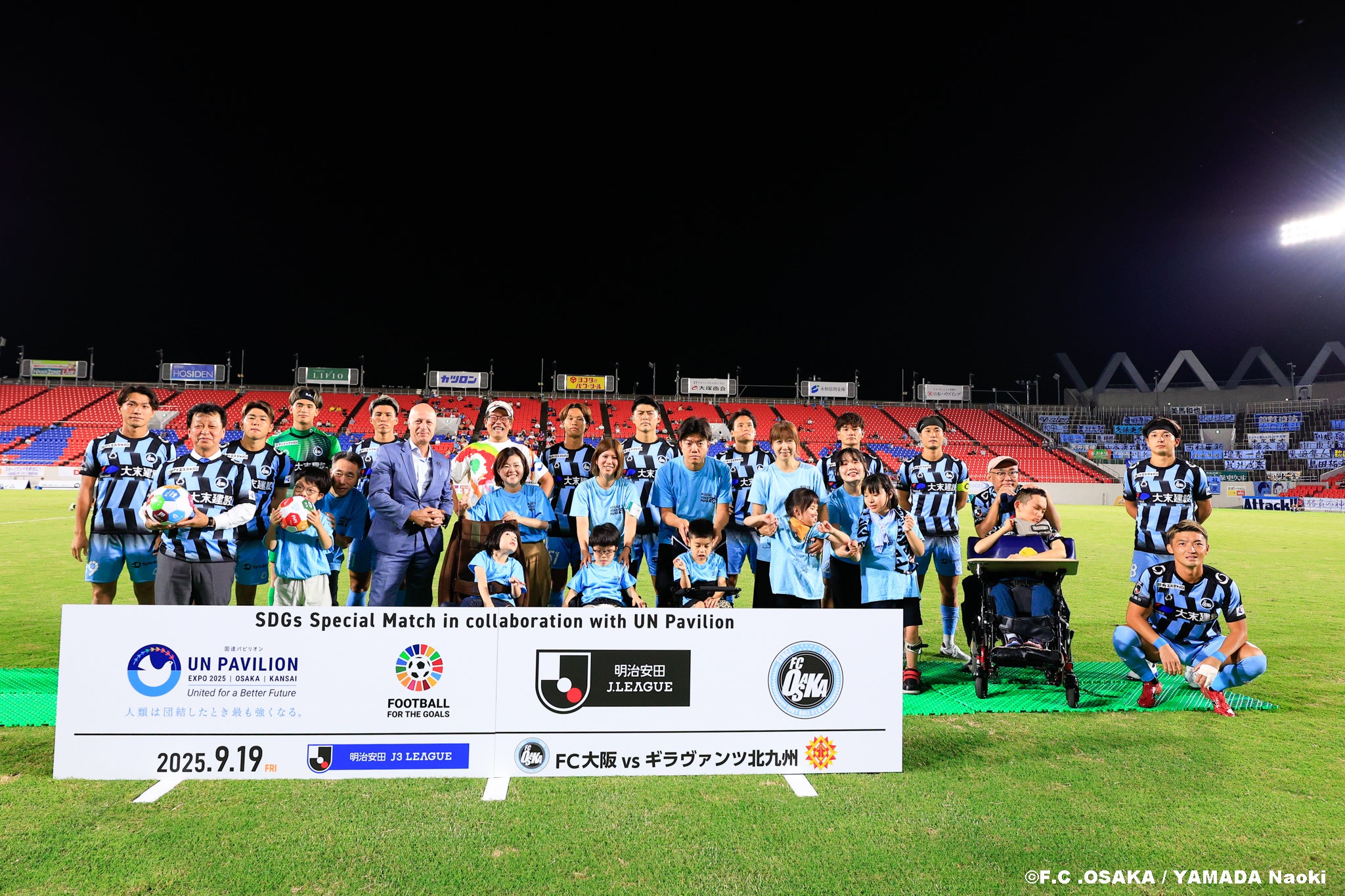 9月19日(金)、東大阪市花園ラグビー場にて開催された明治安田J3リーグ第28節 ギラヴァンツ北九州戦は、「SDGsスペシャルマッチ in collaboration with UN Pavilion」 として行われました。