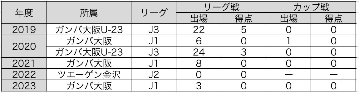 ガンバ大阪ジュニアユース - ガンバ大阪ユース - ガンバ大阪 - ツエーゲン金沢(育成型期限付き) - ガンバ大阪