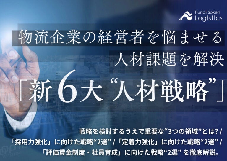 日本最大級の物流コンサルティングファーム 船井総研ロジ株式会社(本社:大阪市中央区、代表:橋本直行、以下「船井総研ロジ」)は”人”に関する悩みを解決する戦略を採用力強化、定着力強化、強化賃金制度・社員育成の3つに分けてくわしく解説した最新の無料ダウンロード「物流企業の経営者を悩ませる人材課題を解決する『新6大戦略』」を公開しました。