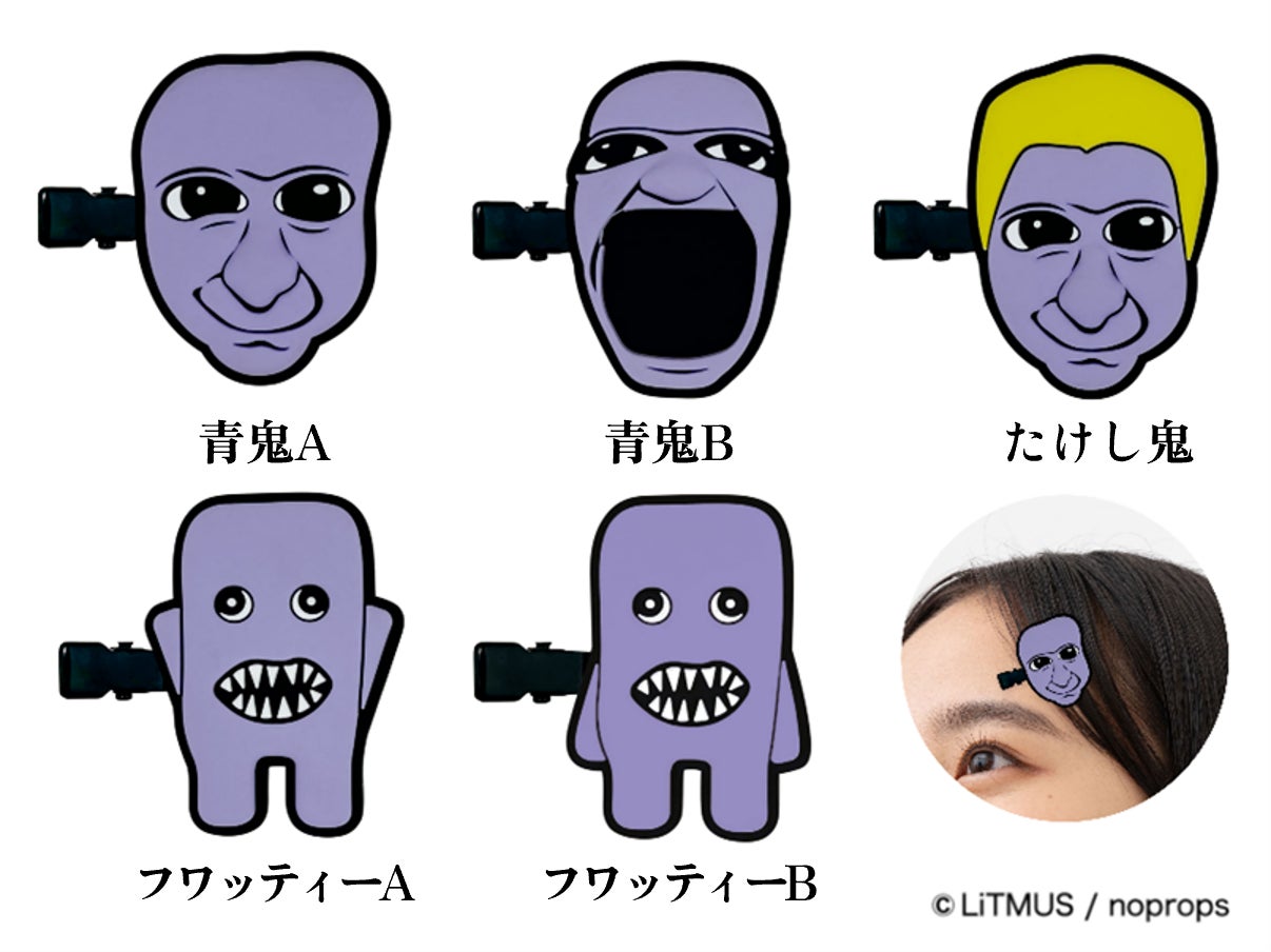 「青鬼」、「フワッティー」、「たけし鬼」のフェイスデザインに、クリップ部分はブラックでカラーリングした前髪クリップ。