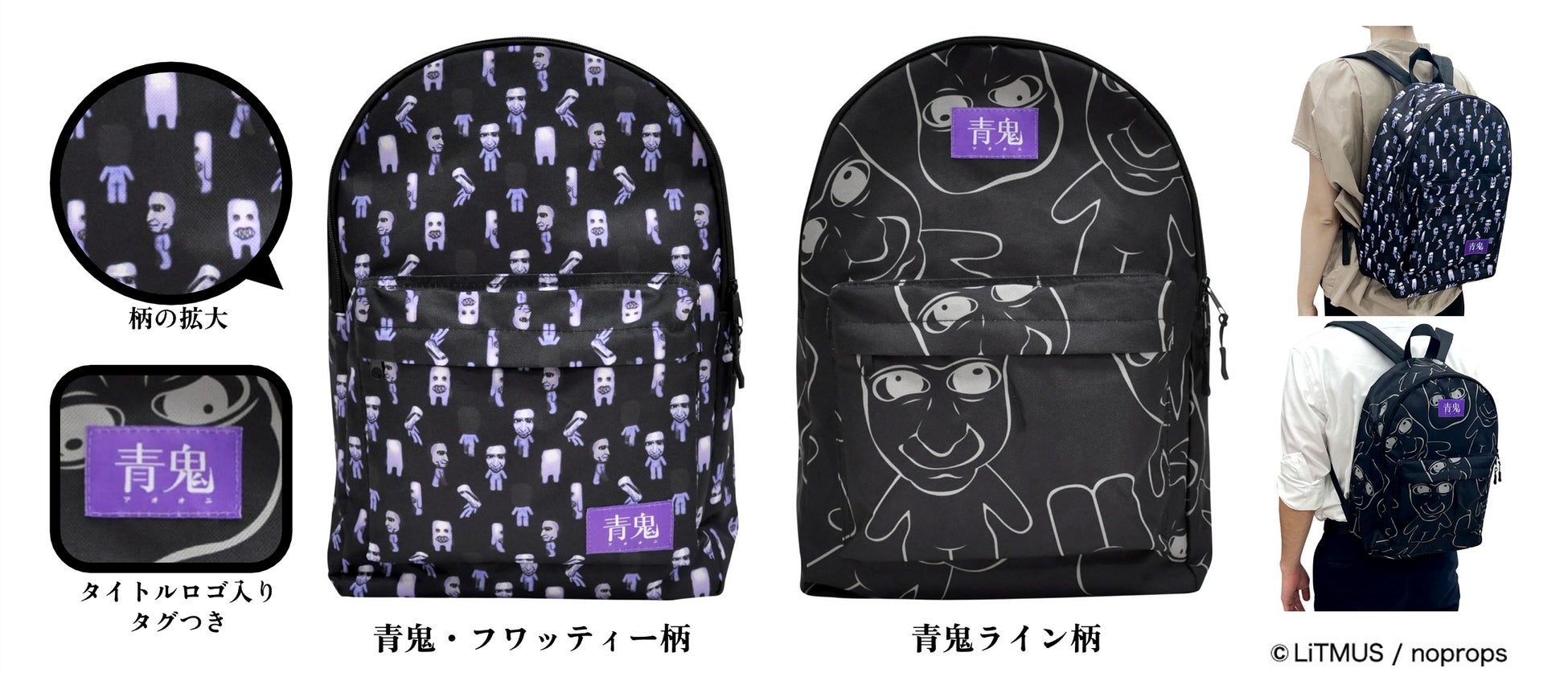 「青鬼」や「フワッティー」がデザインされた総柄リュック。