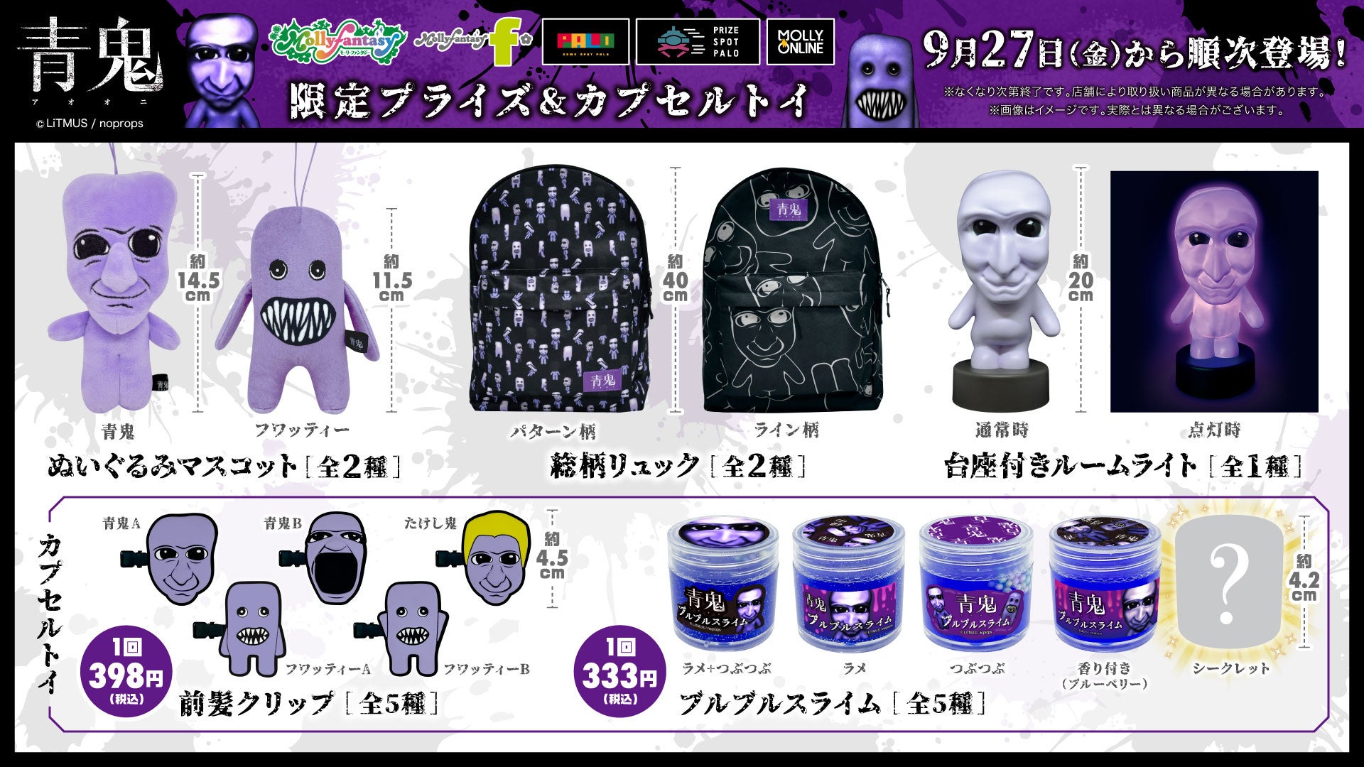 『青鬼』が光るルームライトやぬいぐるみマスコット、前髪クリップがモーリーファンタジー・PALO限定プライズ・カプセルトイに 9月27日(金)より展開開始