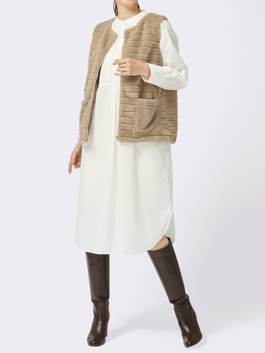 【商品名】ポケット付きボーダーフェイクファーベスト