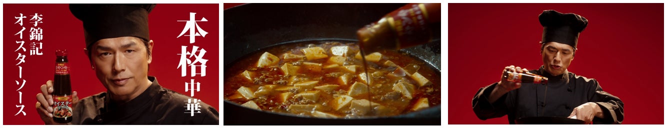 「伝統派」役の高橋さんが主役の本CMでは、いつもの料理に李錦記オイスターソースを加えることで、本格中華の味わいになることを伝えます。「プロも使ってますから!」と自信の一言。最後には麻婆豆腐を豪快に頬張り、笑顔をこぼします。
