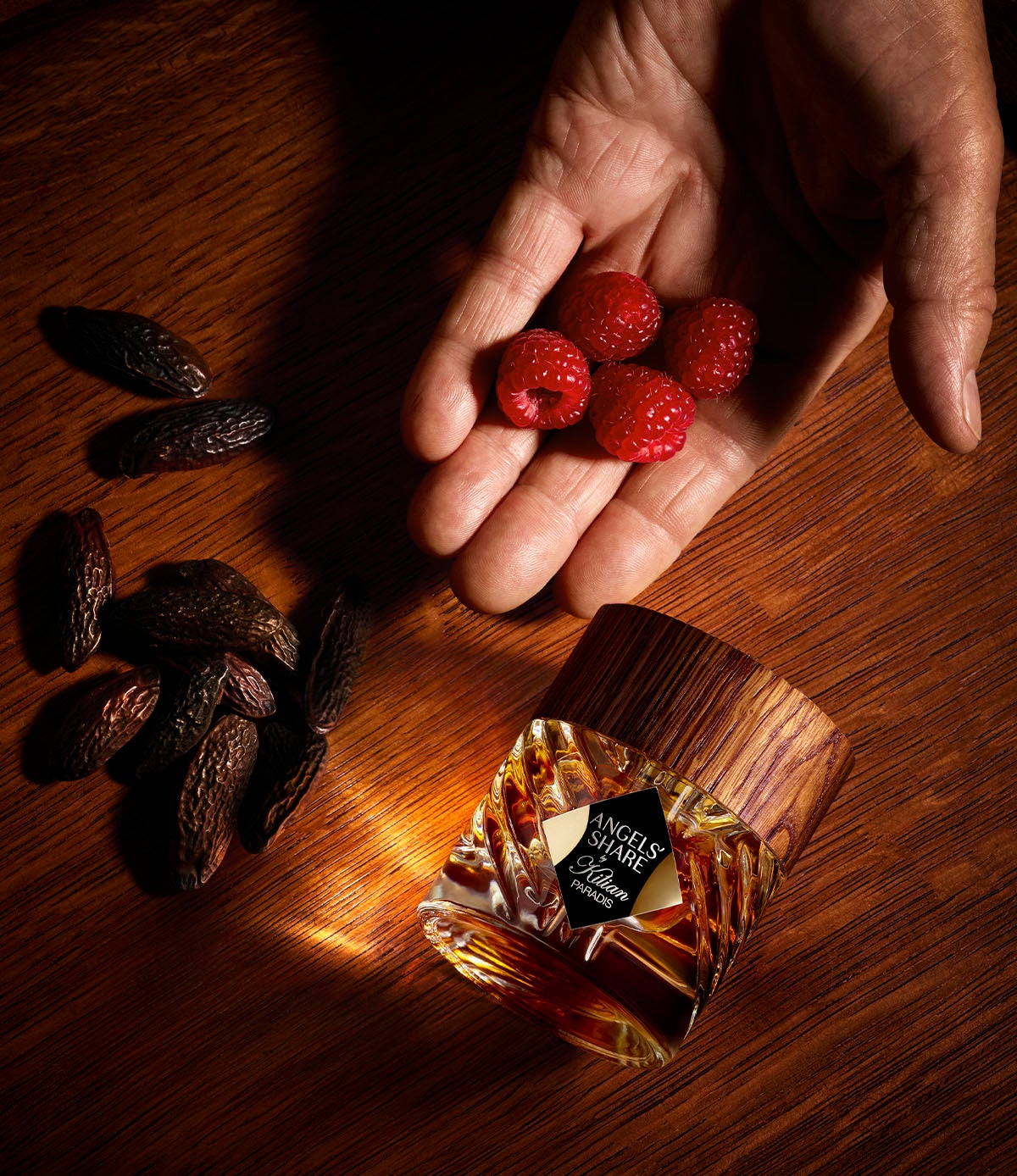 「エンジェルズ シェア パラディ エキストレ ド パルファム」は、一族のレガシーへのオマージュを捧げ、特別な技術によって作り上げられました。エンジェルズ シェア オード パルファムのシグネチャーアコードであるコニャックオイル、トンカビーン、シナモン、オークを中心に、ラズベリーリキュールをブレンドし、深みのある複雑さを加えています。香りは瞬時にブルガリアンローズオイルとシナモンバークオイルの豊かなファセットを展開し、サンダルウッドアルバムオイルとトンカビーンアブソリュートのウッディでグルマンなドライダウンが広がります。