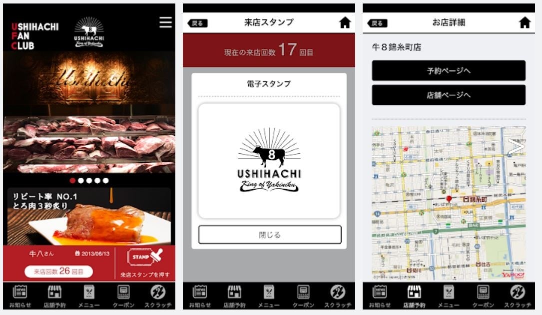 USHIHACHIの公式ファンクラブアプリ「UFC(ウシハチ ファンクラブ)」。こちらのアプリをダウンロードしご登録いただくと、「UFC会員」となります。会員特典や店舗検索や予約が可能。さらに会員様向けのお得な情報配信や、当日から使用できる特典など盛りだくさんの内容となっております。