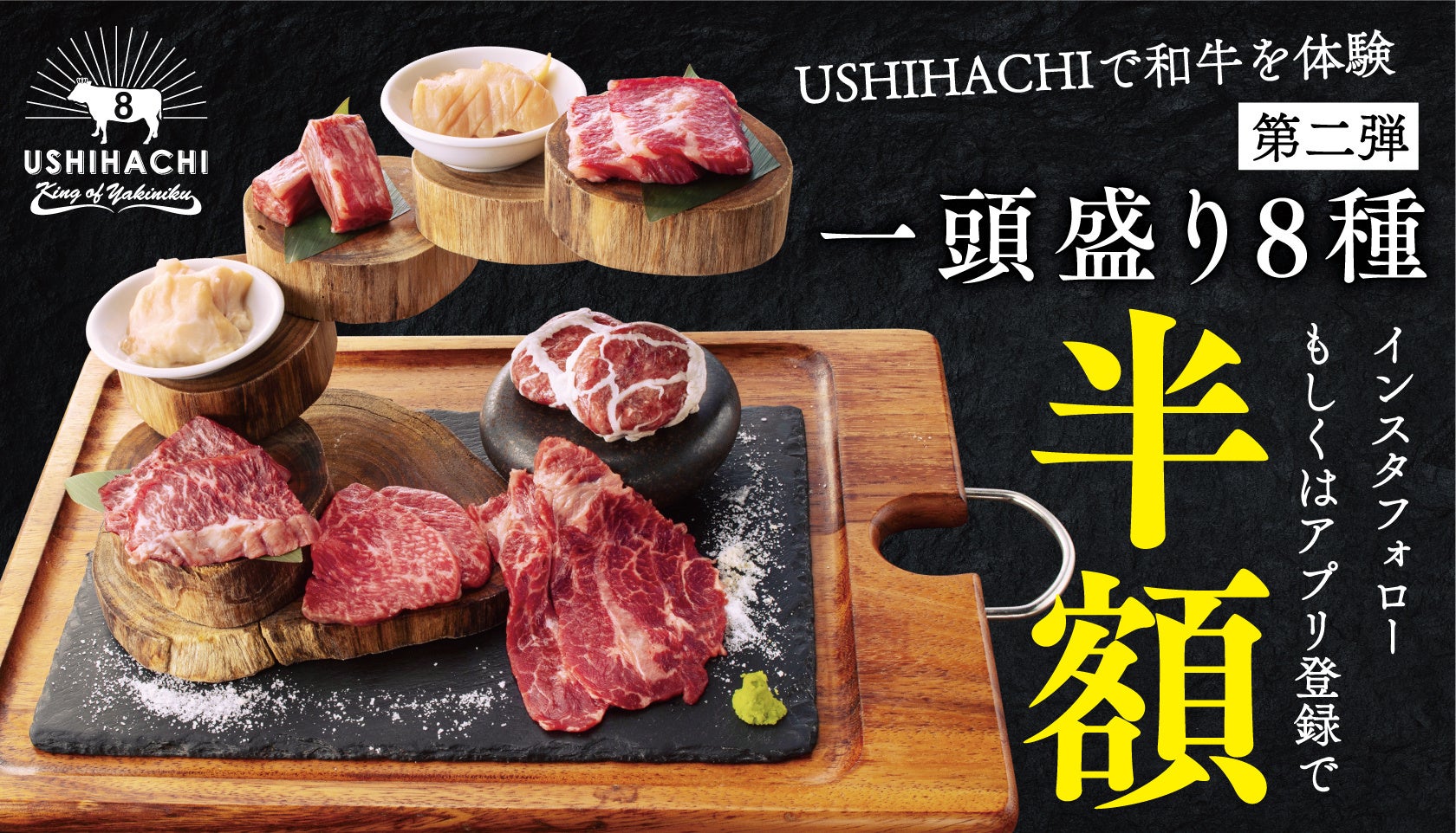 【期間限定】焼肉専門店「USHIHACHI」(ウシハチ)を体験できる3大イベント第二弾!スペシャルプレート「USHIHACHI一頭盛り【8種】」を半額でご提供