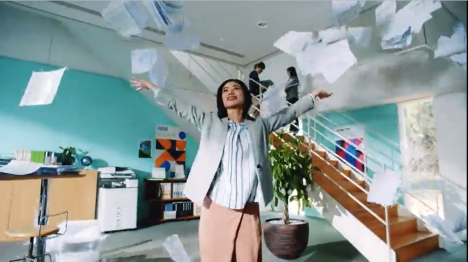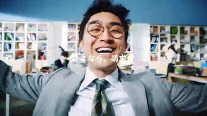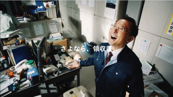 動画内では、膨大な請求書や領収書、会計帳簿といった“紙書類”に悩まされるビジネスパーソンが、法改正をきっかけにペーパーレス化し、「紙を捨てられる」「業務を効率化できる」といった感情を表現しています。