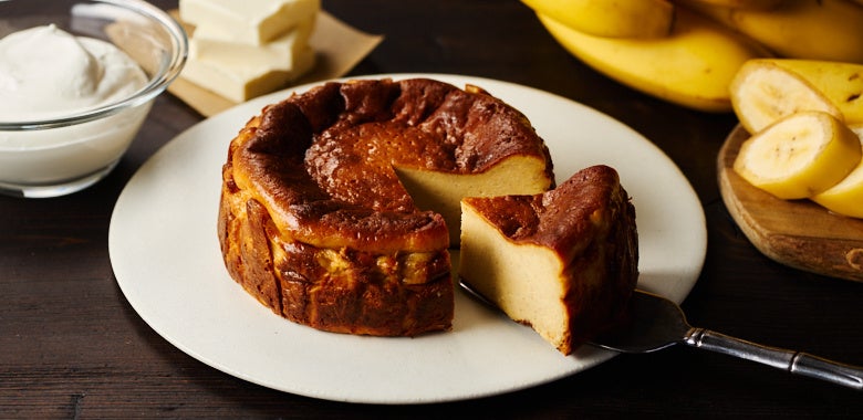 プライベートレストラン「クッチーナジャンニ」のオーナーであり、築地にチーズケーキ店「TEATRO eFfe TOKYO」を構える、小崎 陽一シェフ監修によるバナナチーズケーキ。
