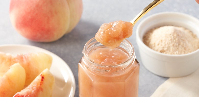 そのまま食べてもおいしい完熟桃は、変色防止のために一度凍らせ、一つひとつ手作業で皮をむいてから、職人の手によりジャムに仕上げました。加熱温度や糖度を細かく調整しているので、桃らしい香りとピンク色も楽しんでいただけます。