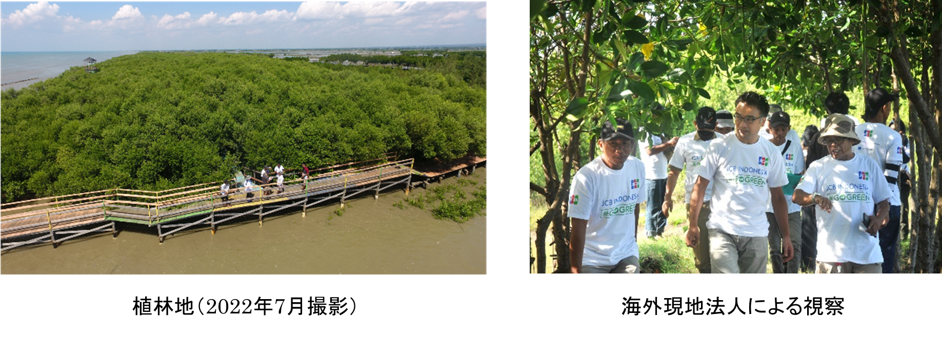 JCBは、公益財団法人オイスカを通じて、インドネシア共和国ジャワ島中部ジャワ州沿岸部におけるマングローブ植林を2016年より支援しています。利用代金明細書など書面発行の機会が多いキャッシュレス事業者として紙の主要な原料となるマングローブの植林を支援することで、環境負荷の軽減とGHG吸収への寄与をめざしています。また、マングローブ林が自然の防波堤の役割を果たし、植林地の村の生活・住環境の保全・改善に役立っているほか、マングローブ林を活かしたエコツーリズムによる村の経済振興や子供たちの環境学習の場としても役立てられています。