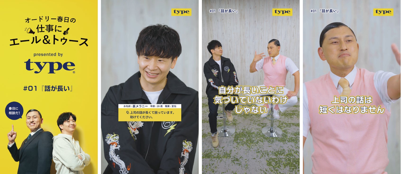 働くすべての人を応援したい!転職サイトtypeがSNS動画企画『オードリー春日の仕事にエール&トゥース』をリリースします。