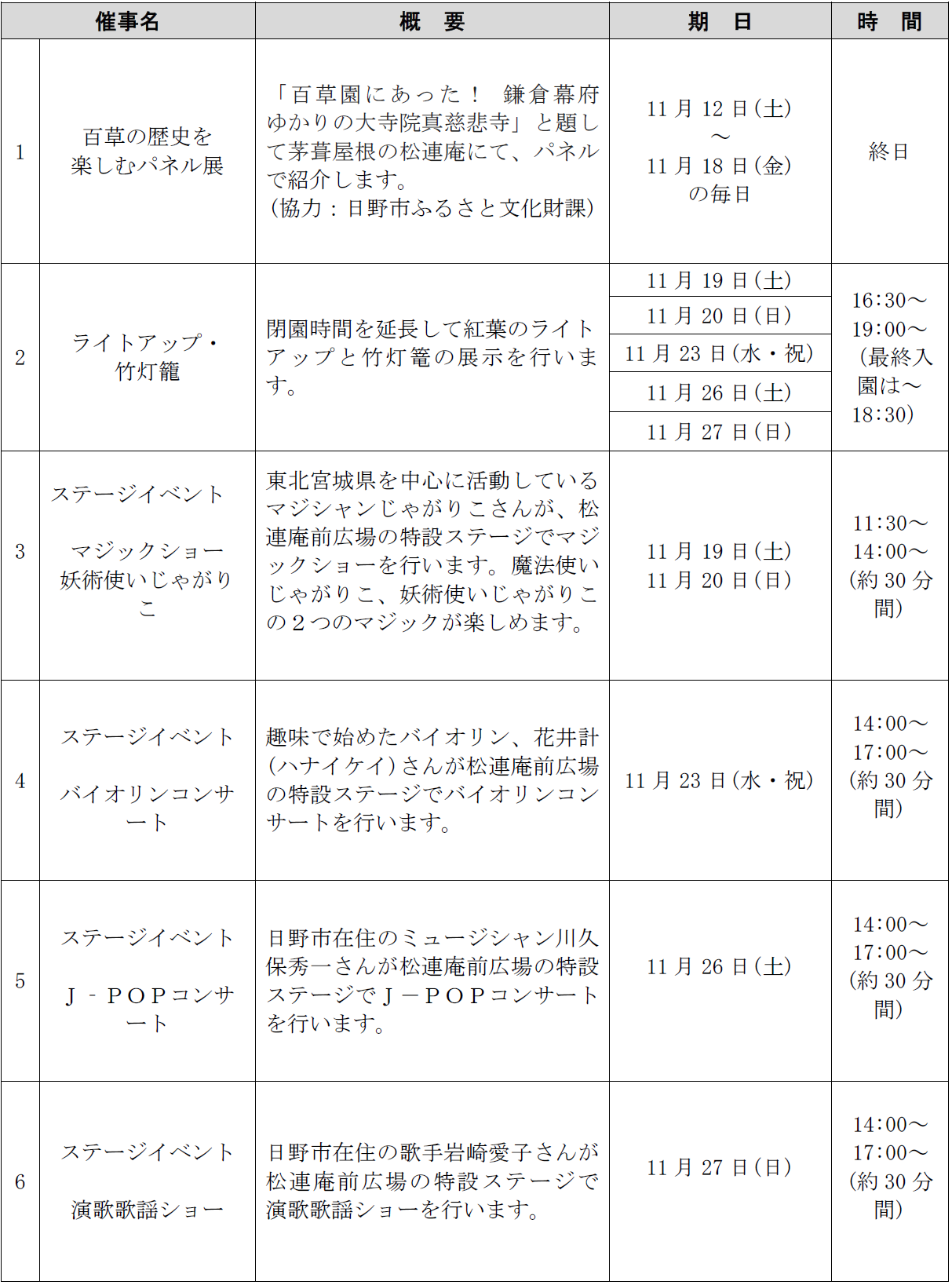 11月12日(土)~12月4日(日)(期間中無休)