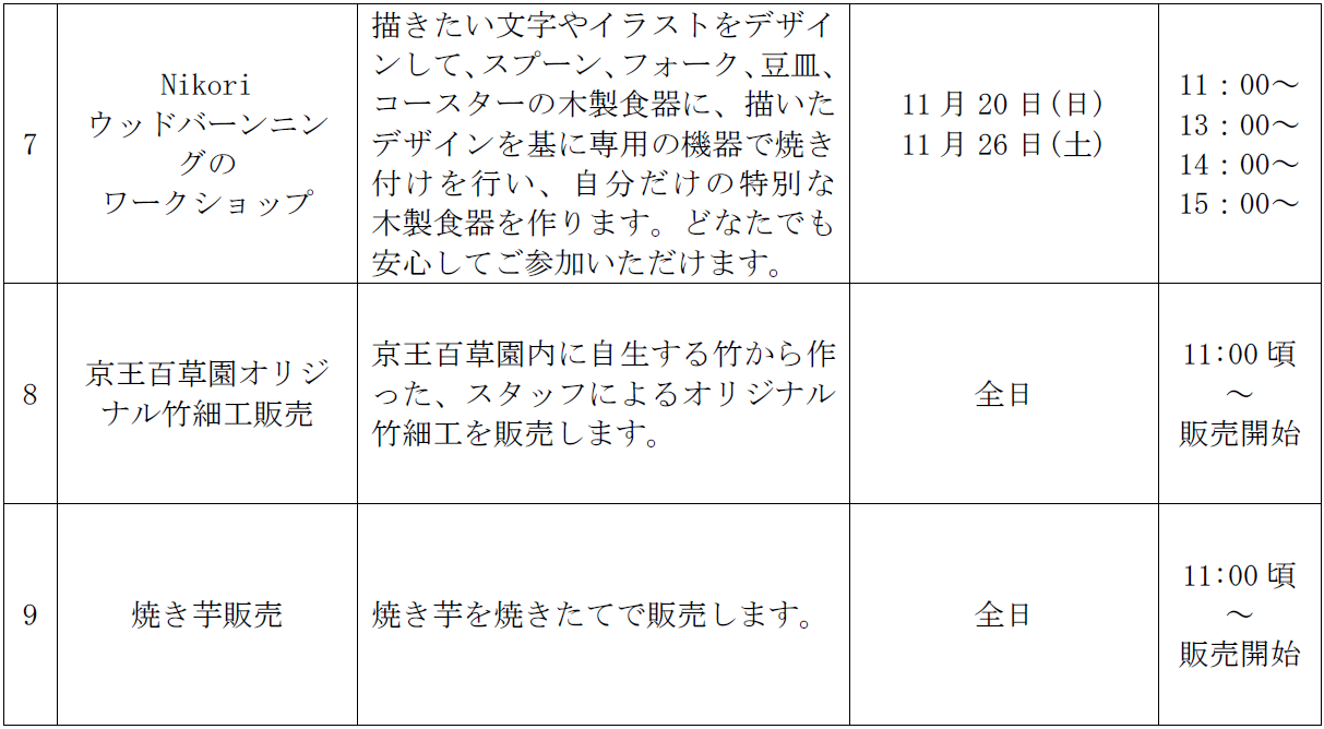 ※11月19日(土)、20日(日)、23日(水・祝)、26日(土)、27日(日)のみ、9:00~19:00