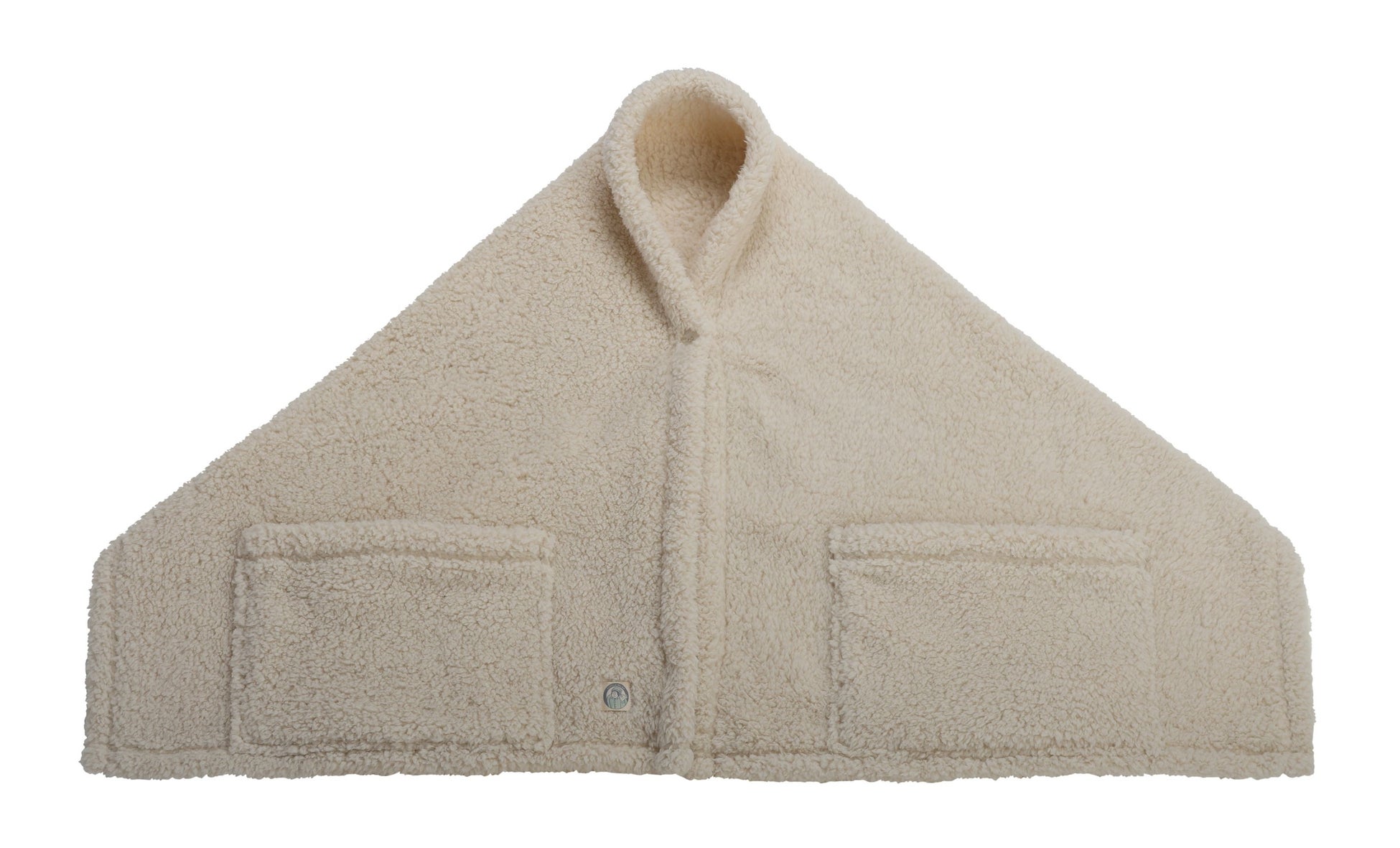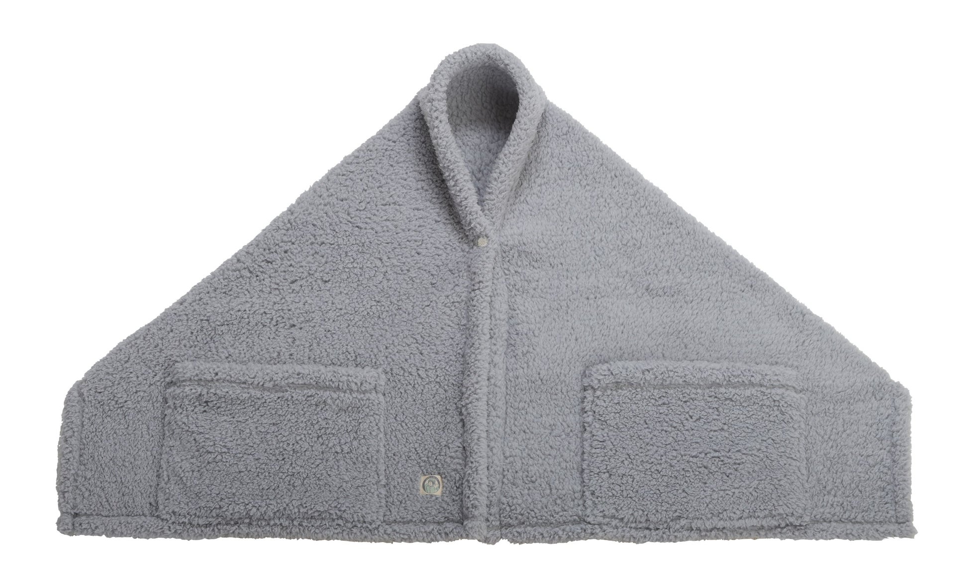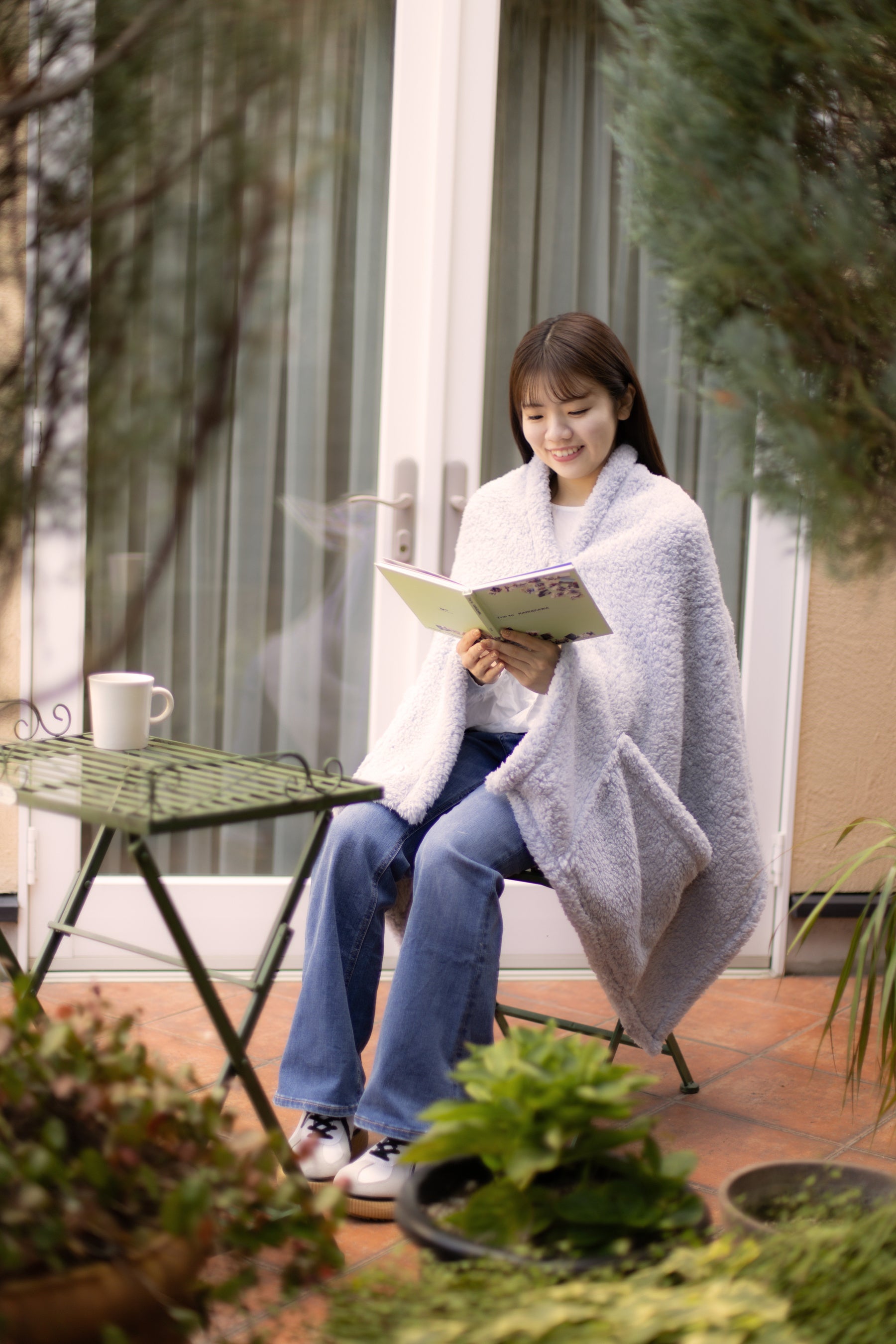 ボタンを留めて肩に羽織ればストールとして、腰に巻けば防寒スカート風に、広げればひざ掛けやお昼寝時におなかをあたためるブランケットとしても使用可能です。室内でのリラックスタイムだけでなく、「ちょっとそこまで」のワンマイルウェアやアウトドアシーンでも活躍します。
