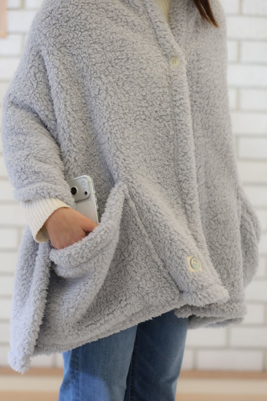 ふんわり軽い、ふわふわタッチのシープボア生地を使用しています。空気をたっぷり含む柔らかな繊維が、温かさを逃しません。